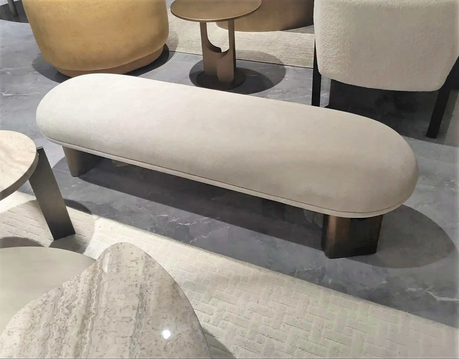 Банкетка представлена в ткани рогожка, цвет светло-серый ZJ649-2.