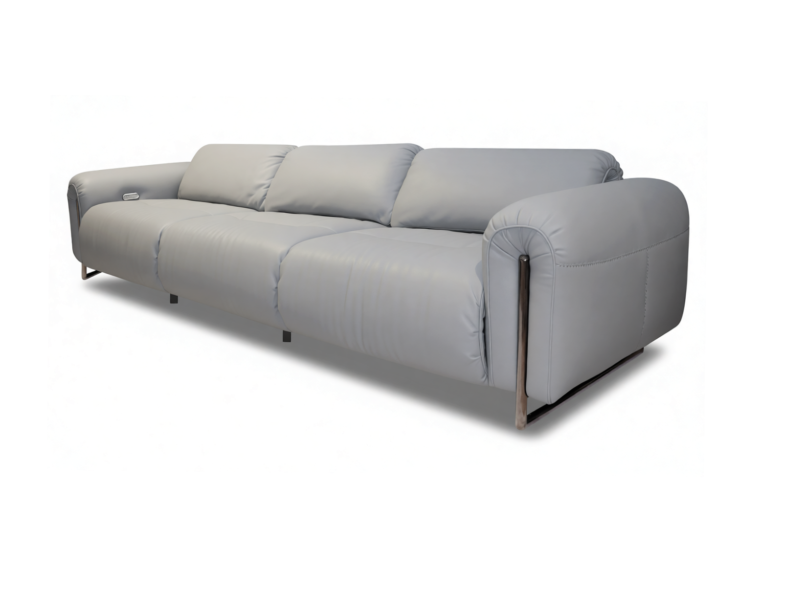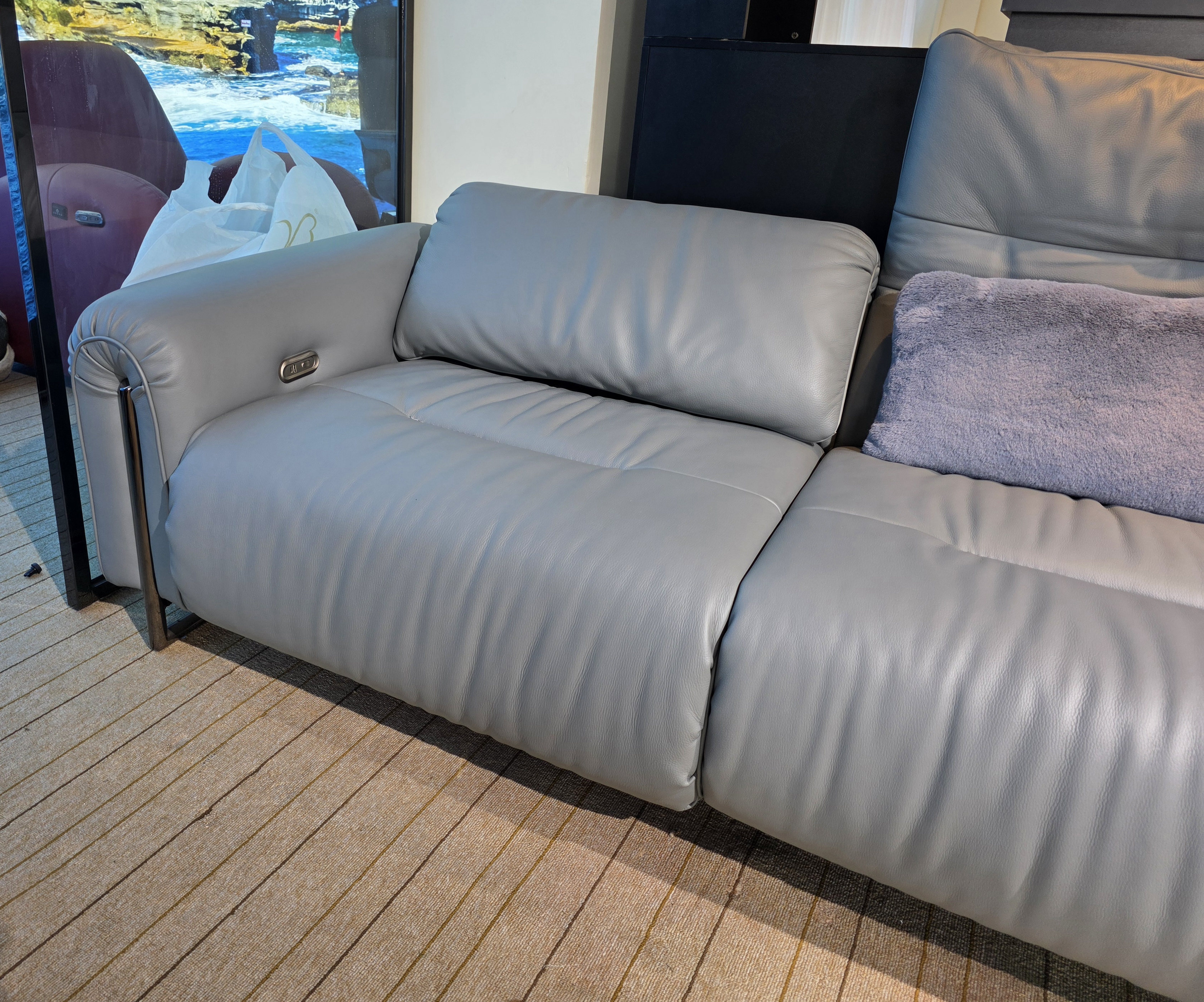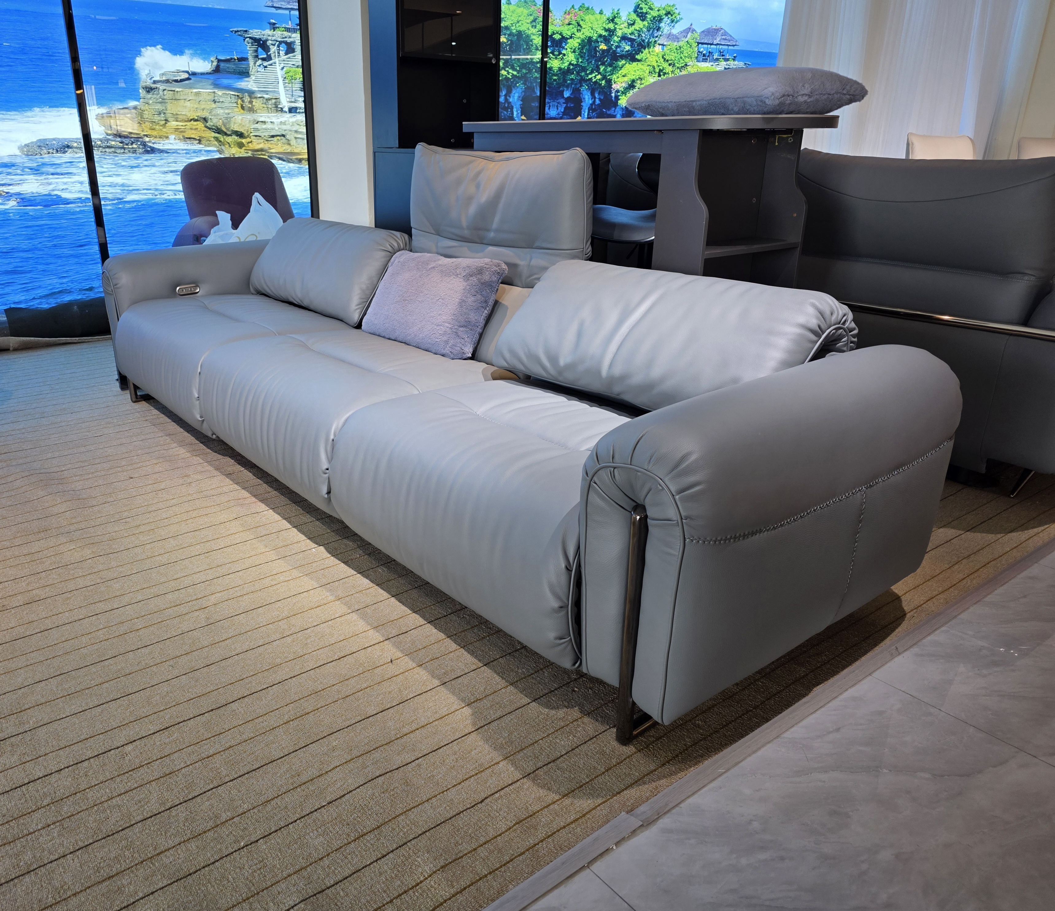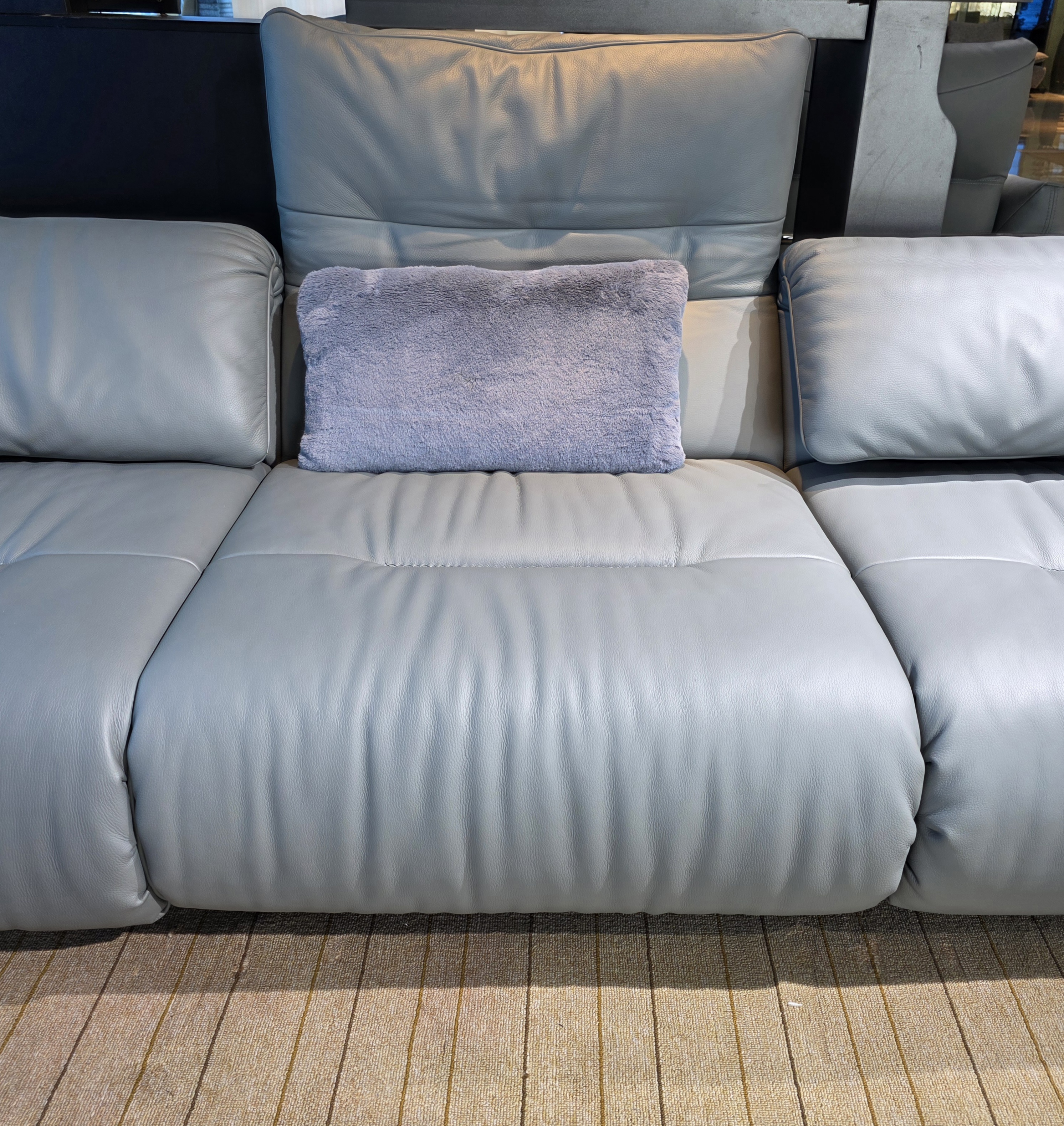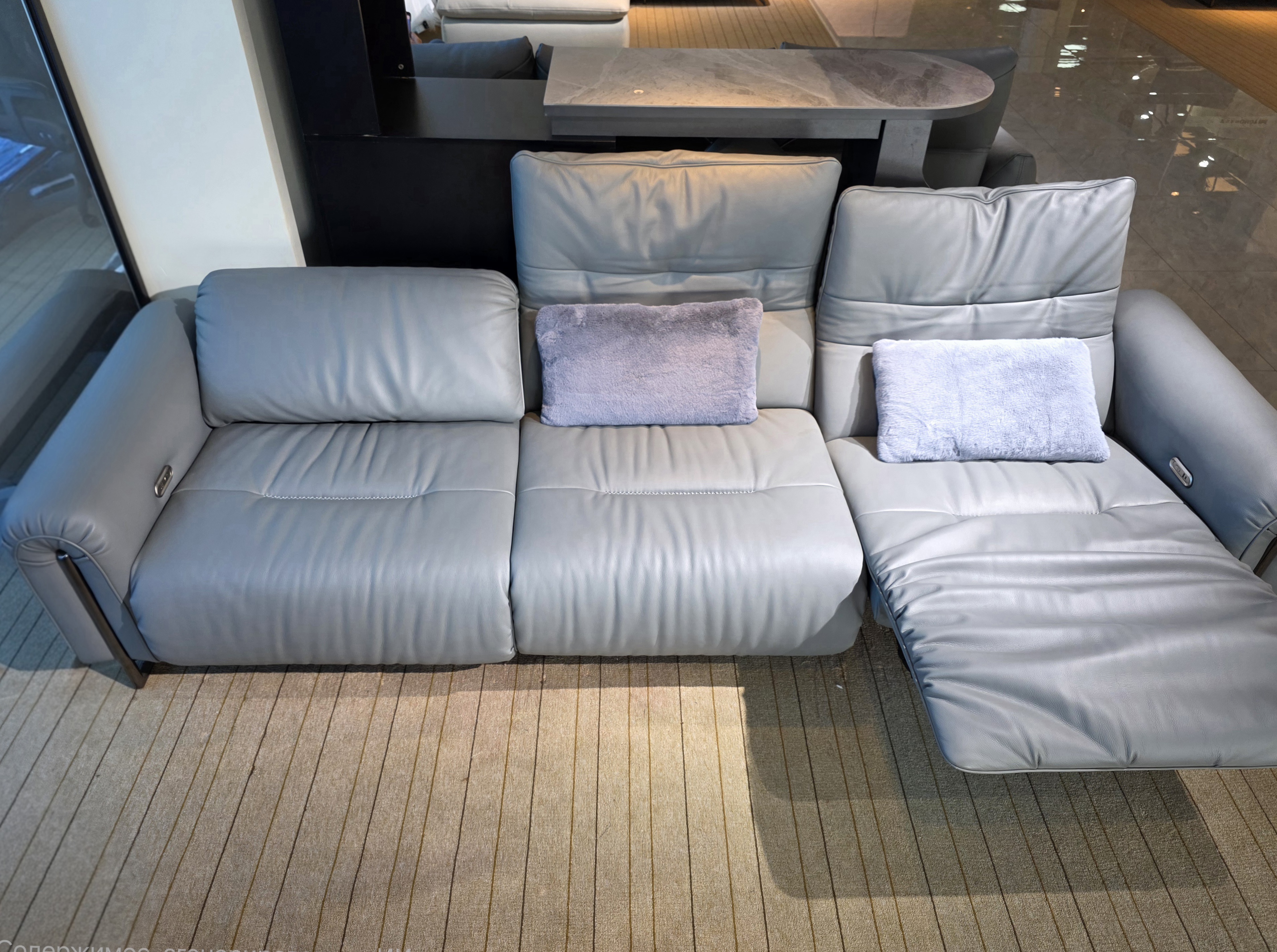 Диван-реклайнер оснащен двумя раздвижными электро-механизмами и регулируемыми подголовниками, позволяющими подобрать наиболее удобное положение.