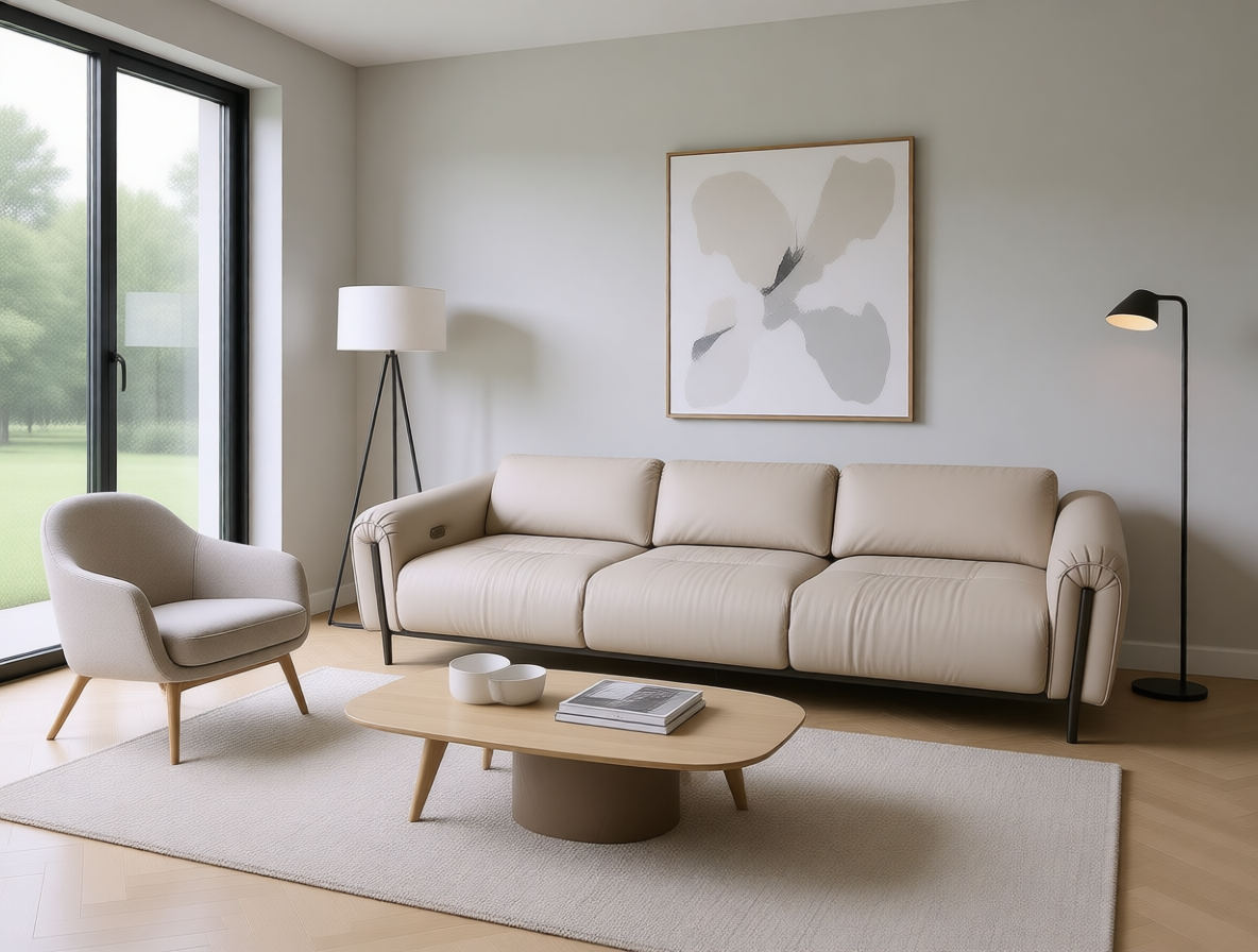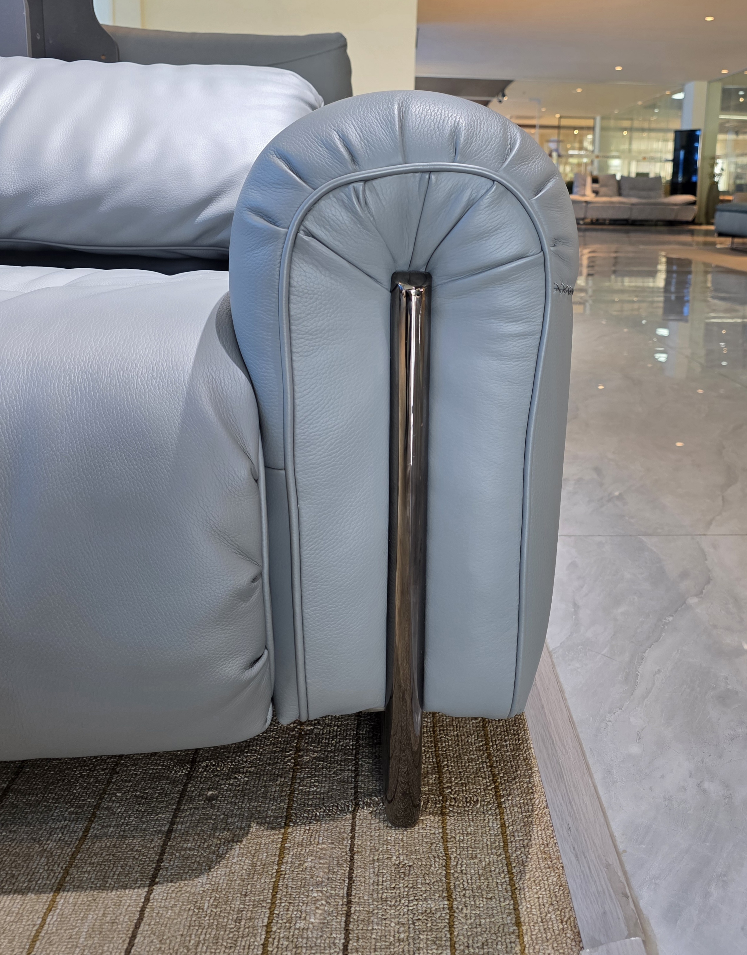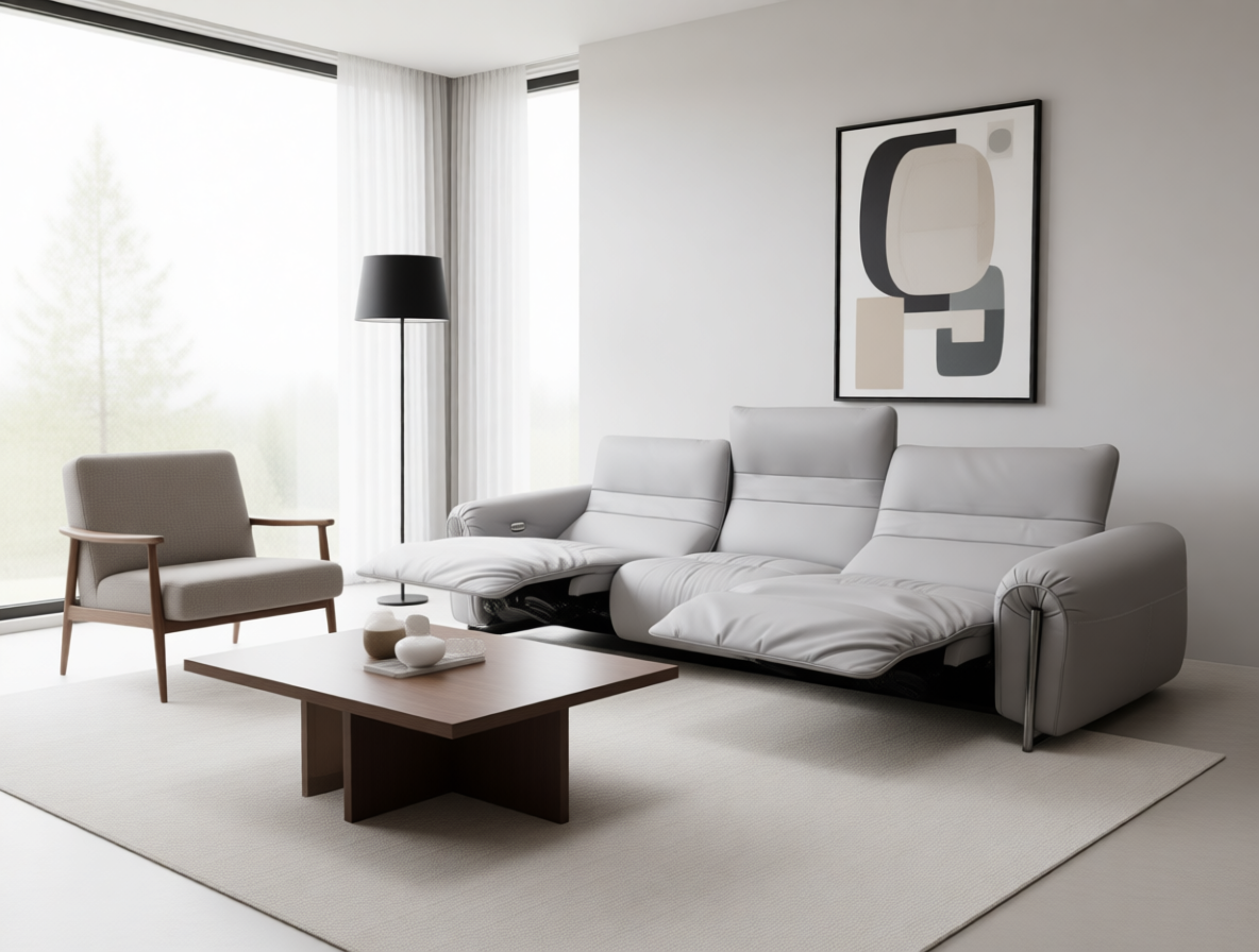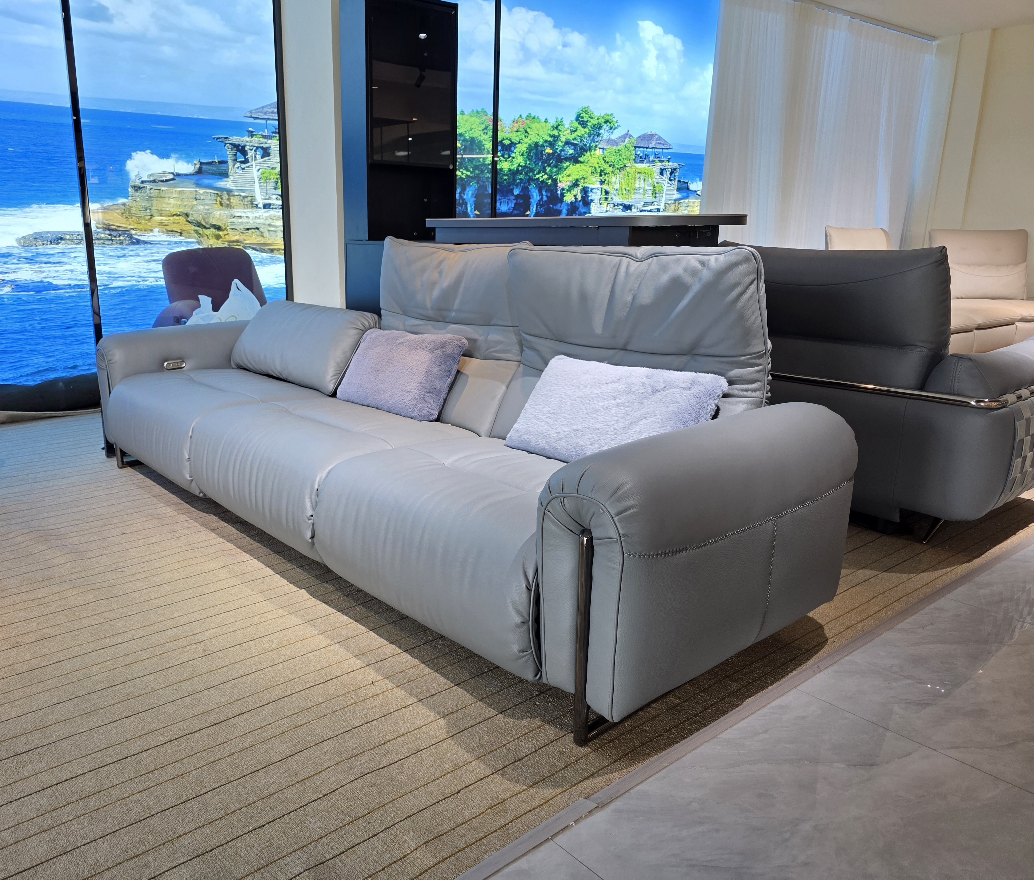 Диван-реклайнер оснащен двумя раздвижными электро-механизмами и регулируемыми подголовниками, позволяющими подобрать наиболее удобное положение.