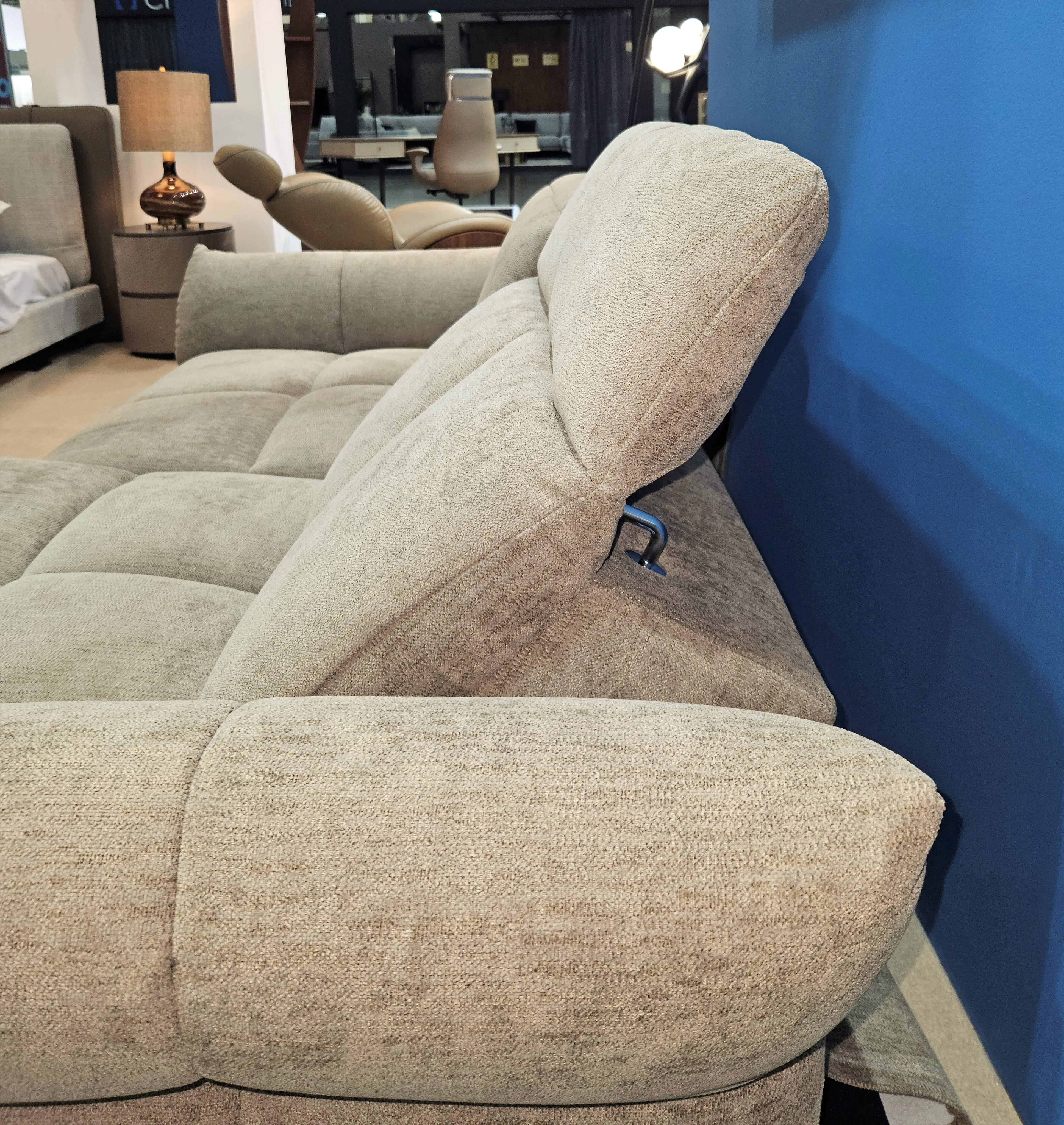 Подлокотники можно немного наклонить. Ширина дивана увеличивается до 215 см.