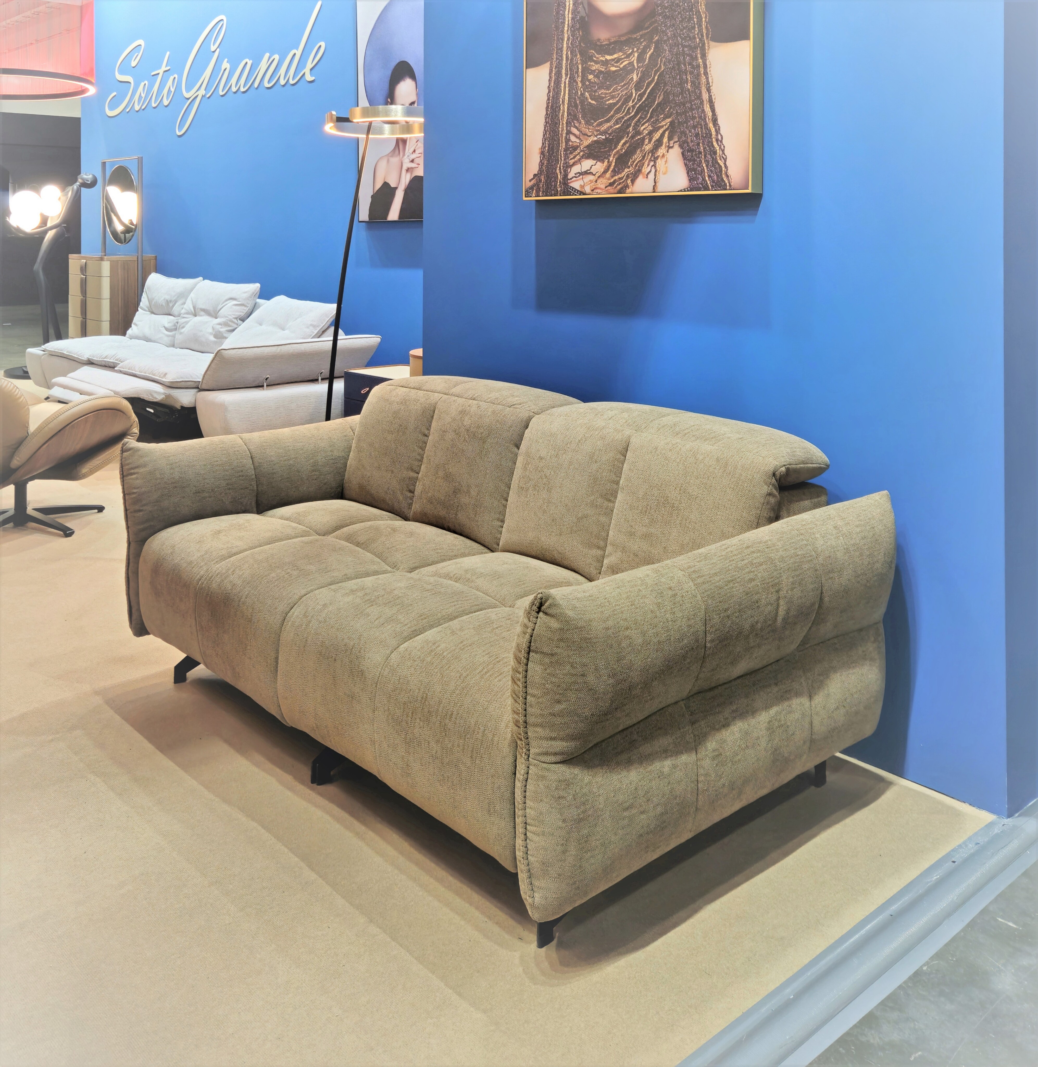 Диван-реклайнер оснащен двумя раздвижными электромеханизмами, позволяющими подобрать наиболее удобное положение.