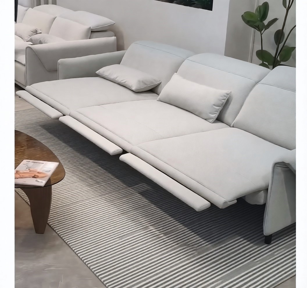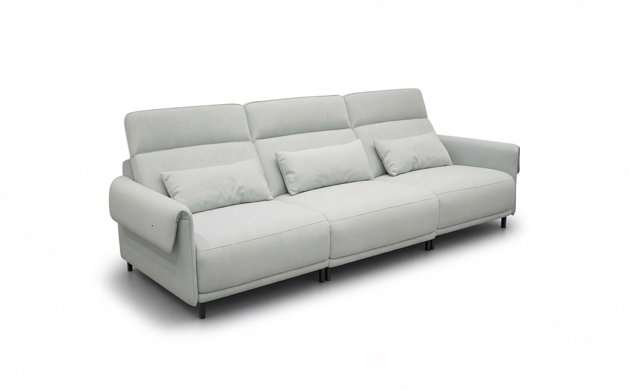 Диван-реклайнер оснащен раздвижными электромеханизмами, позволяющими подобрать наиболее удобное положение.