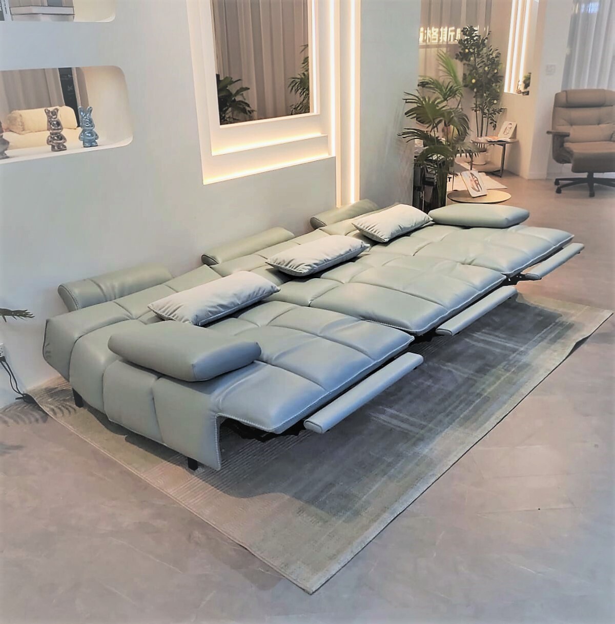 Диван-реклайнер оснащен раздвижными электромеханизмами, позволяющими подобрать наиболее удобное положение.