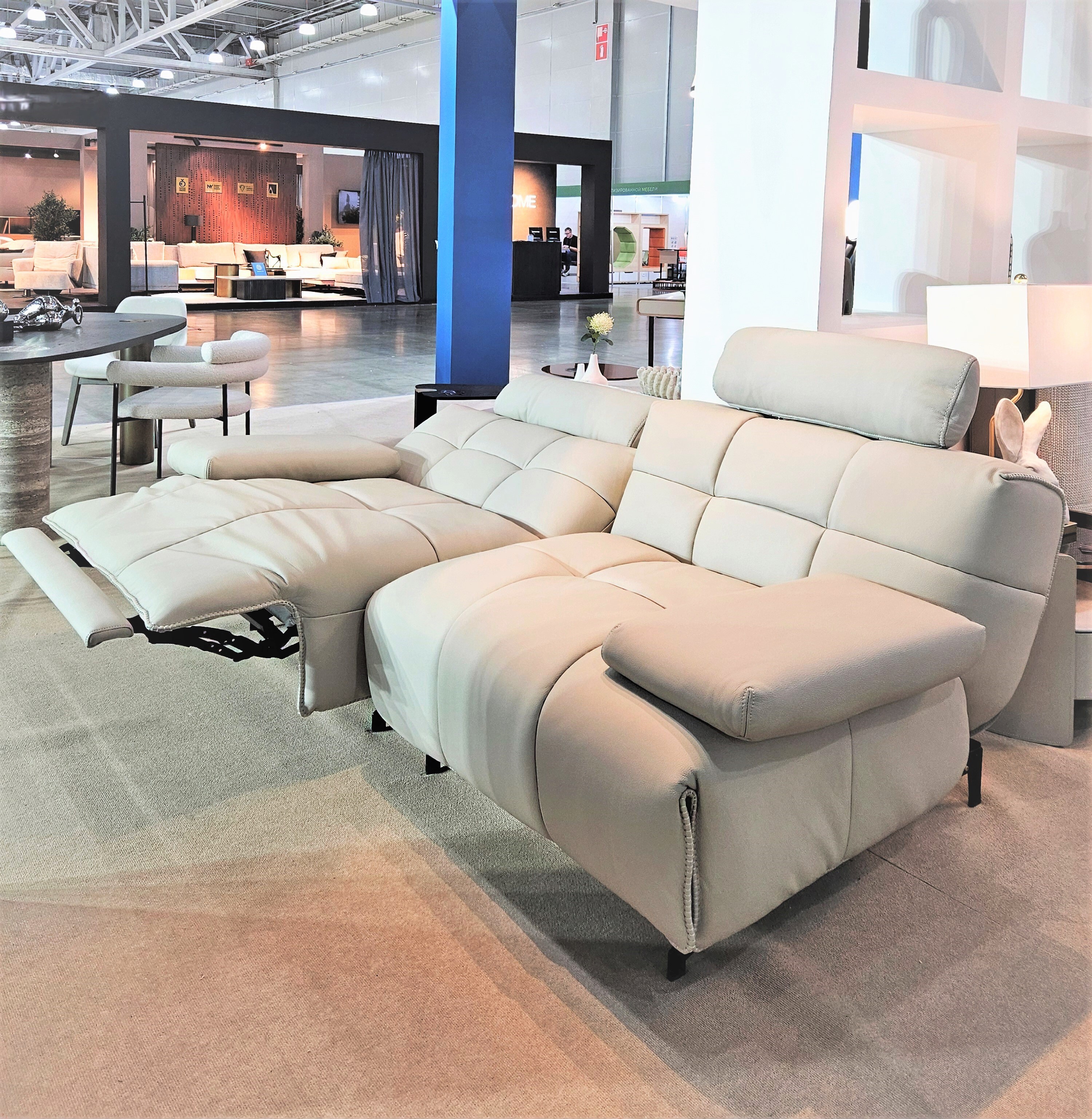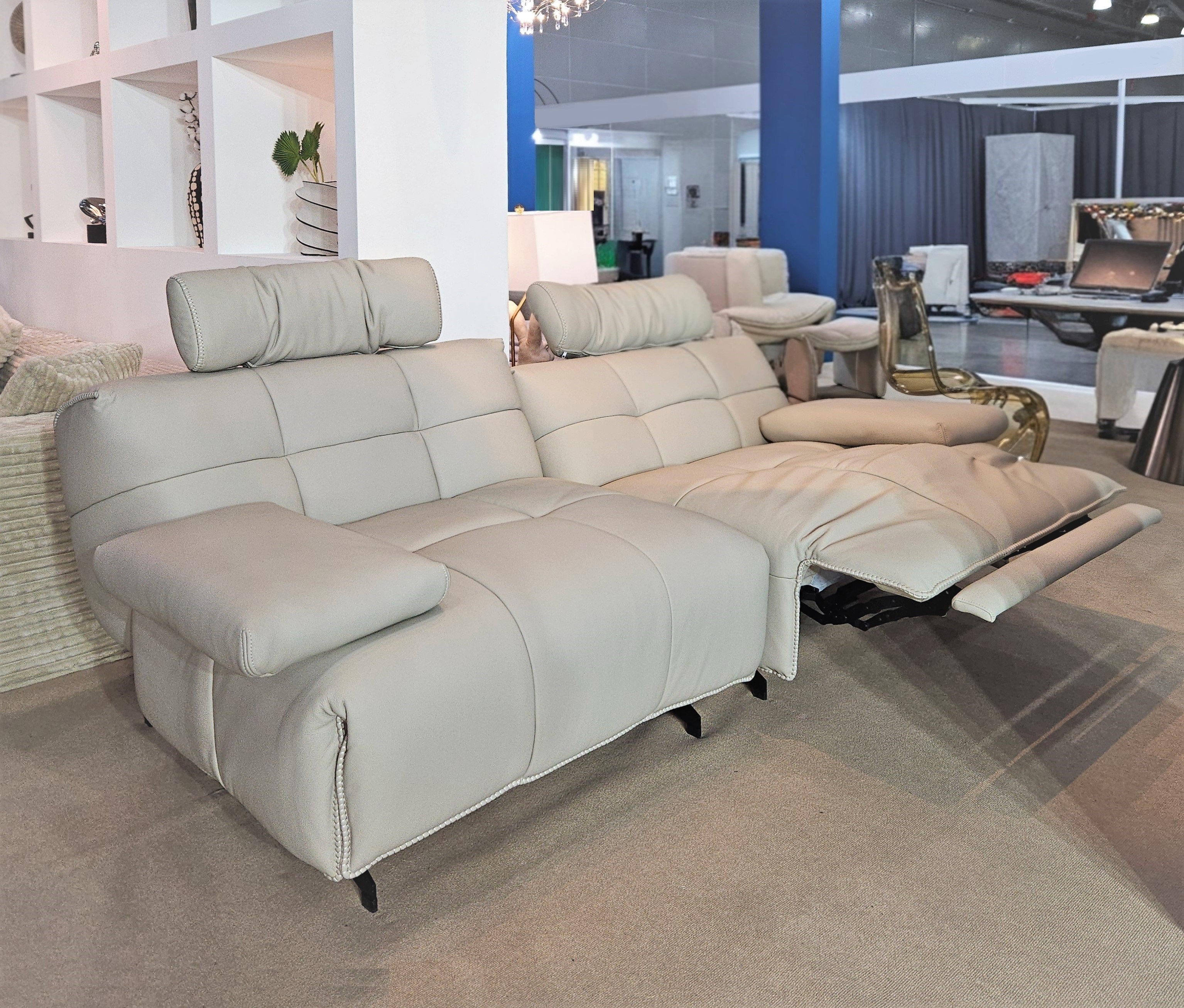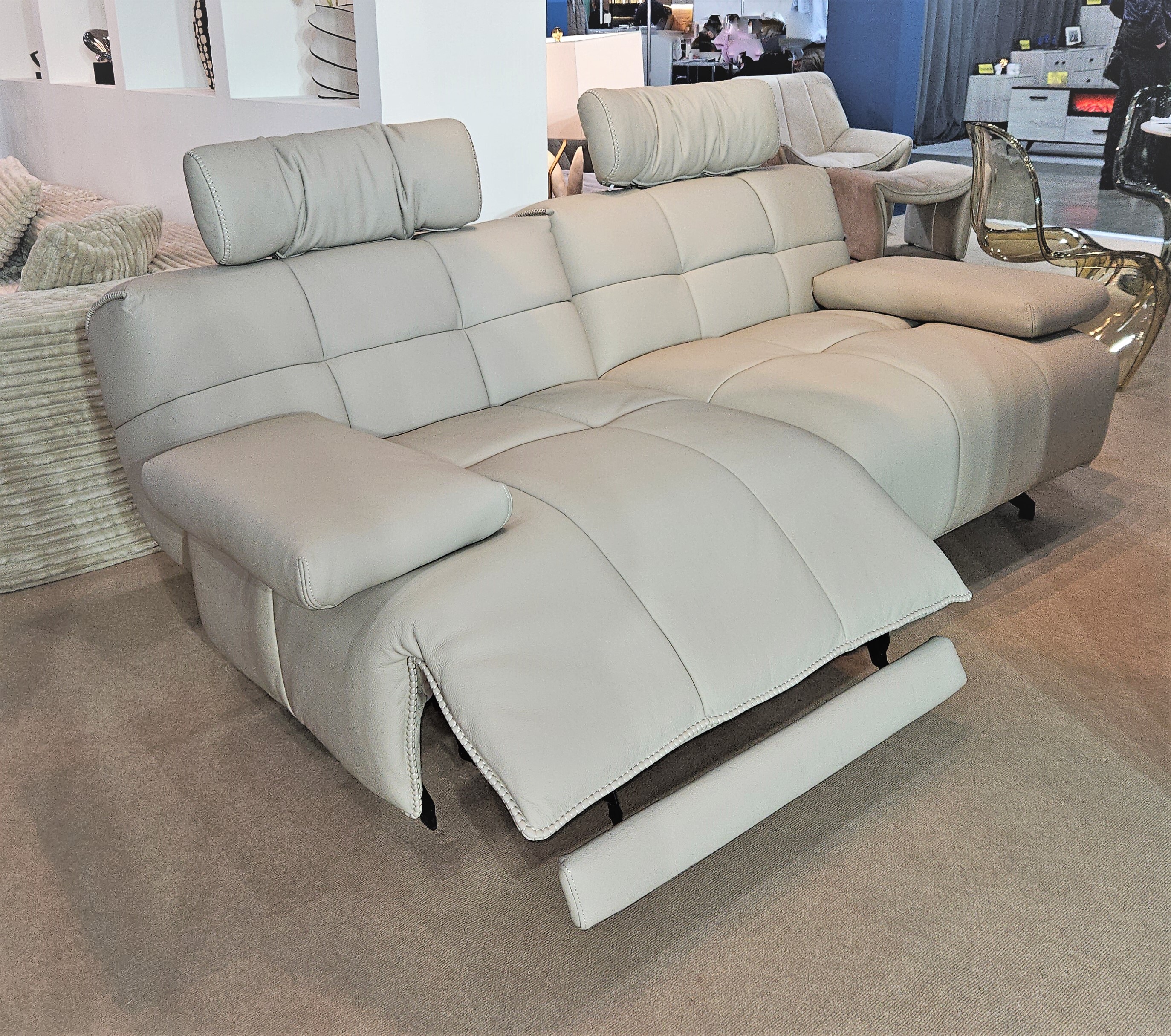 Диван-реклайнер оснащен раздвижными электромеханизмами, позволяющими подобрать наиболее удобное положение.