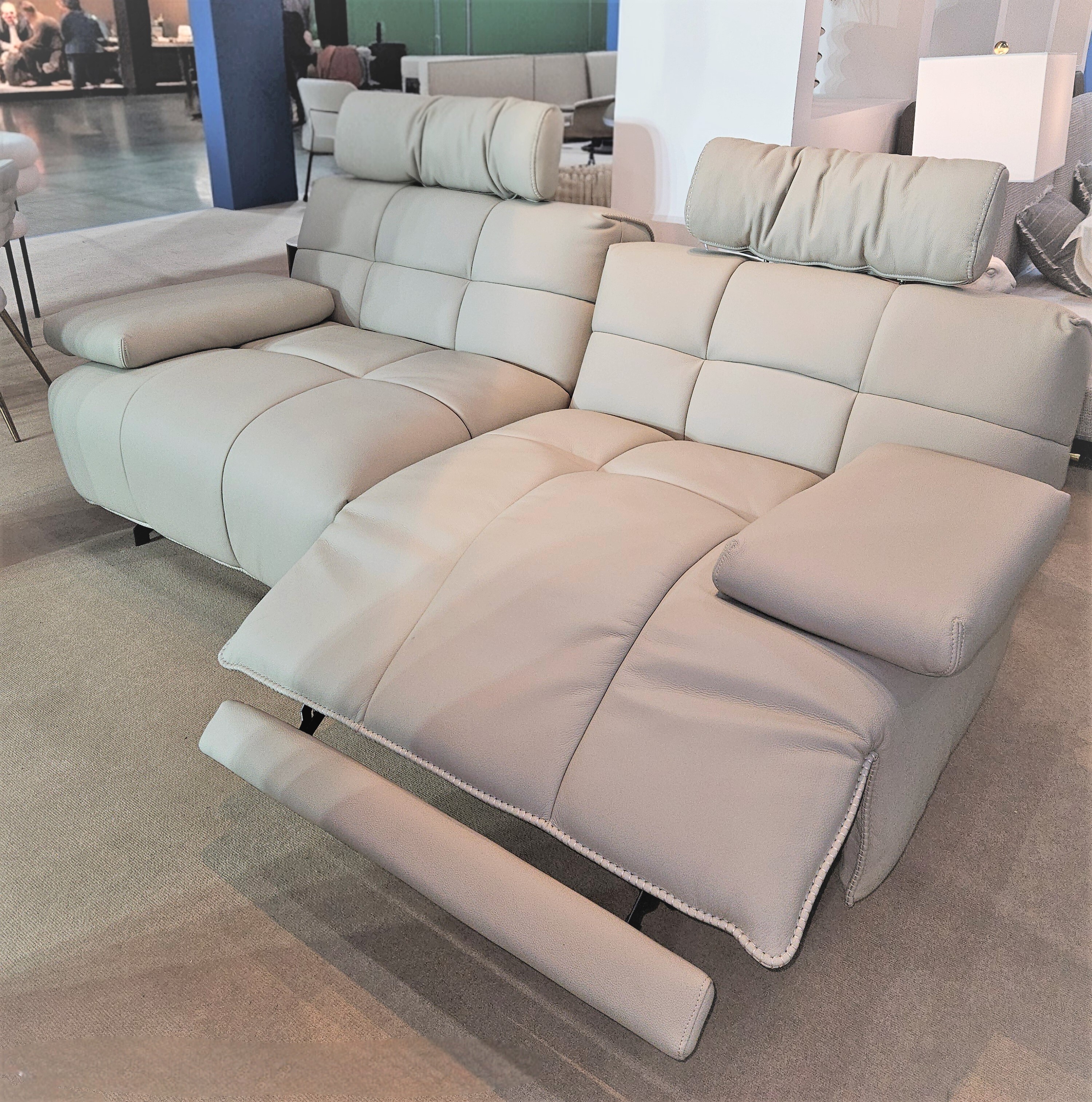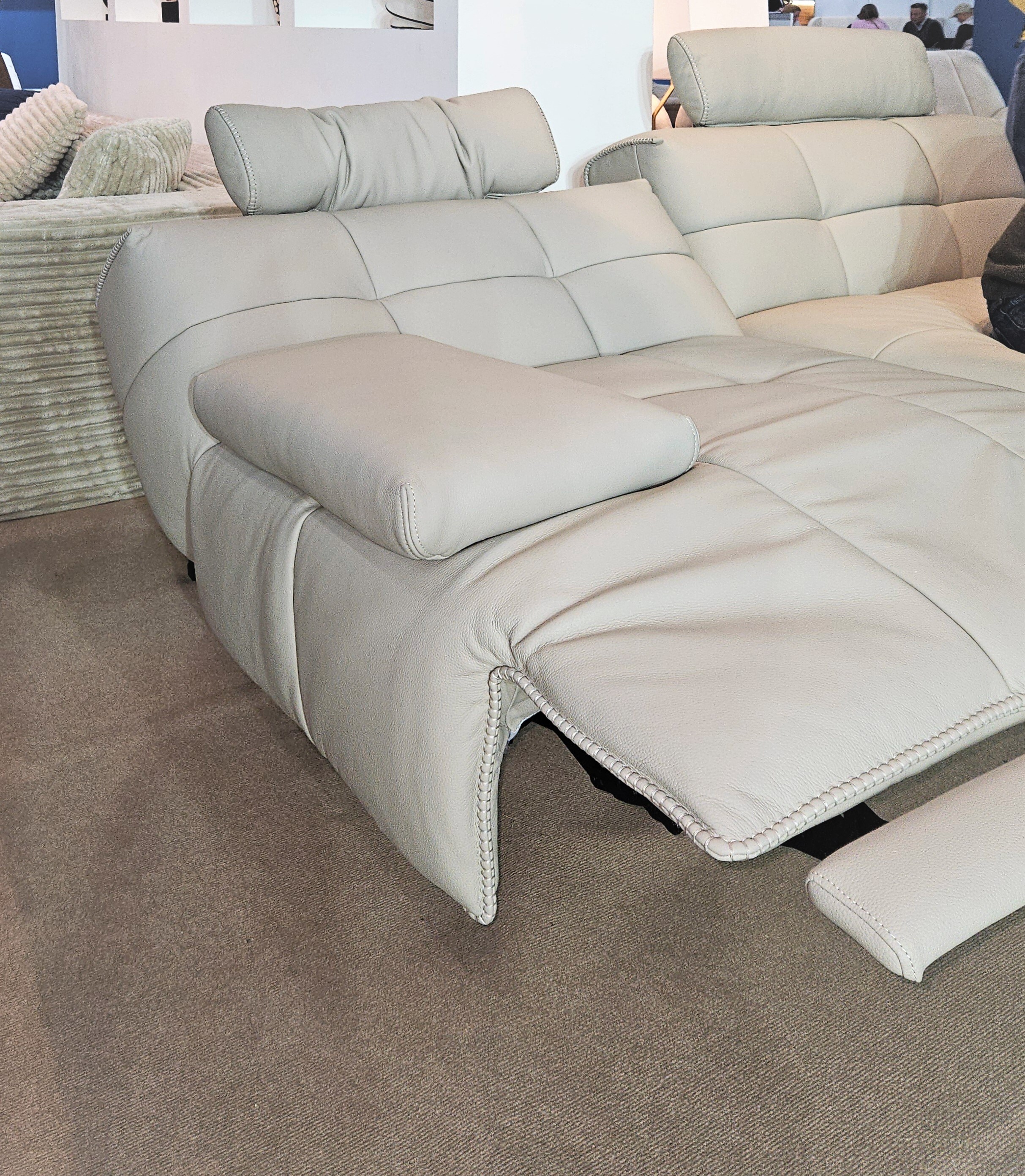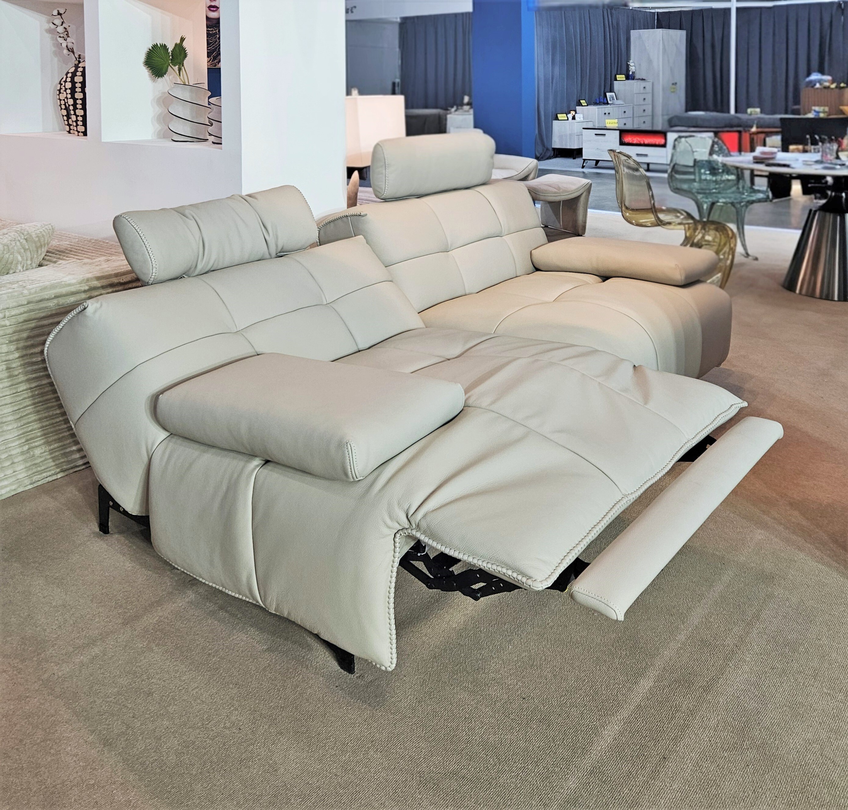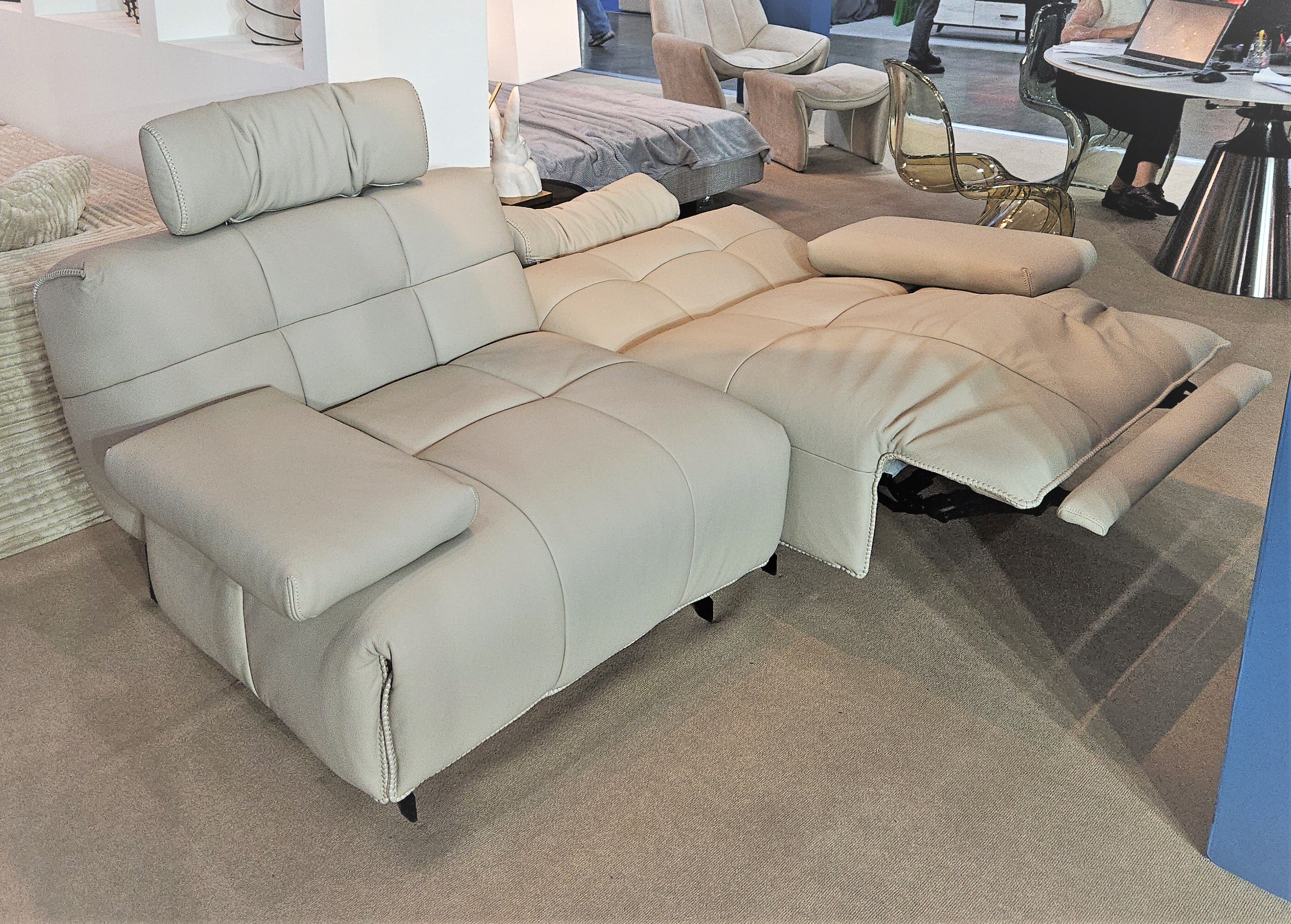 Диван-реклайнер оснащен раздвижными электромеханизмами, позволяющими подобрать наиболее удобное положение.