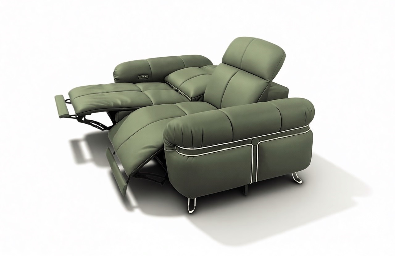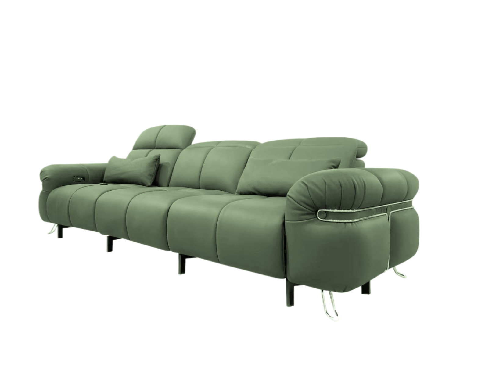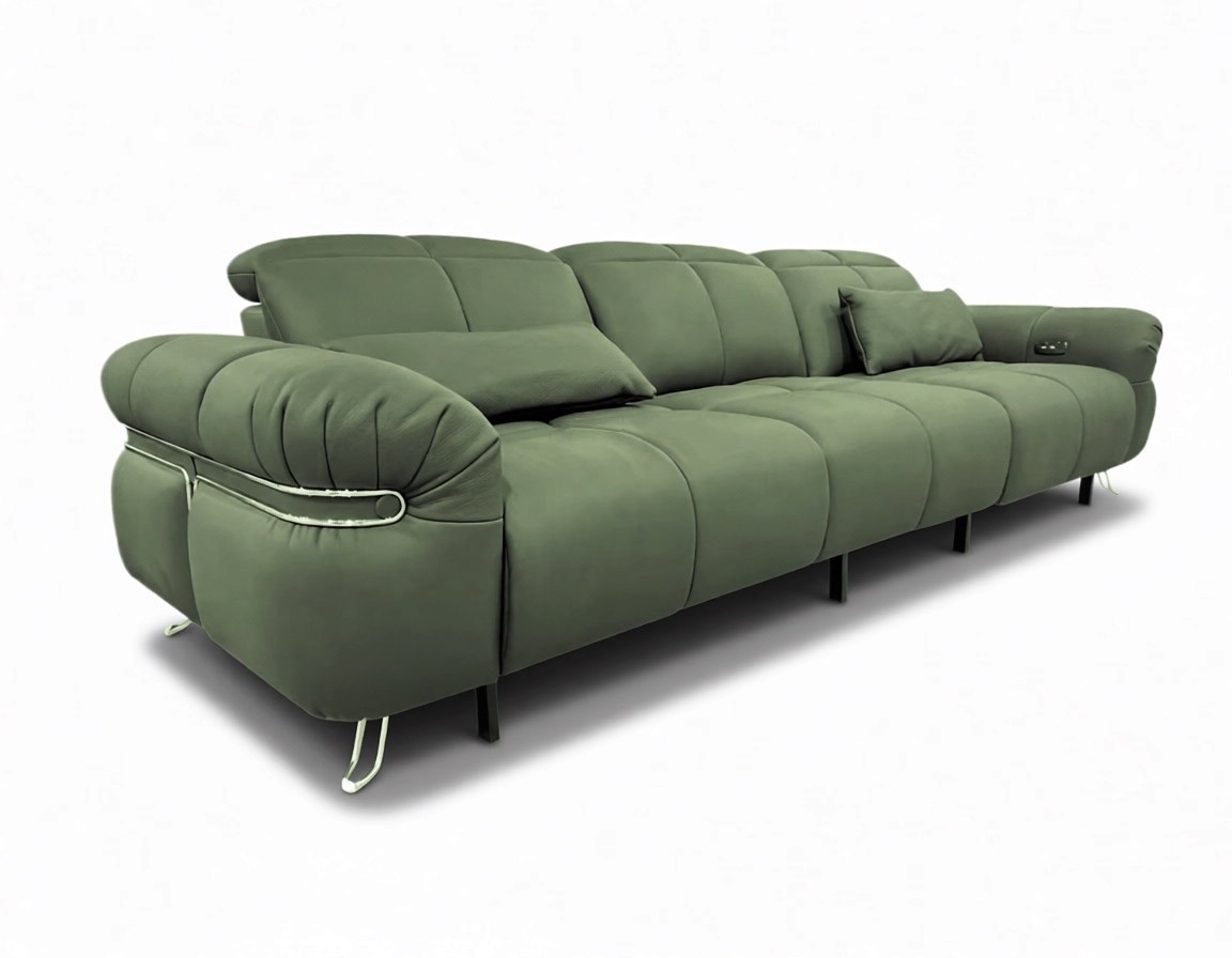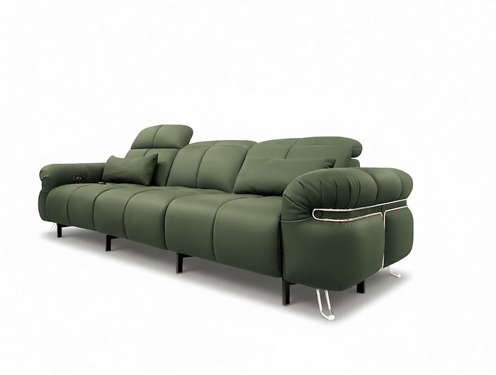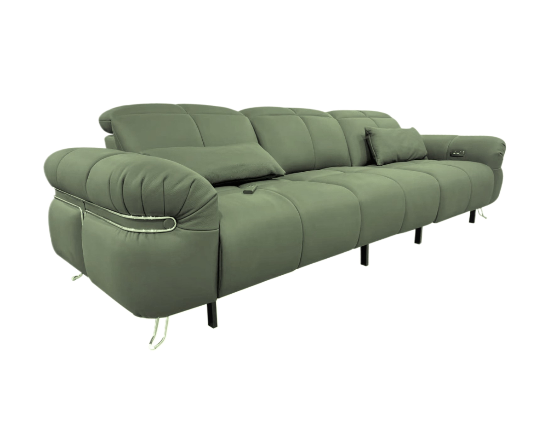 Диван-реклайнер оснащен раздвижными электромеханизмами, позволяющими подобрать наиболее удобное положение.