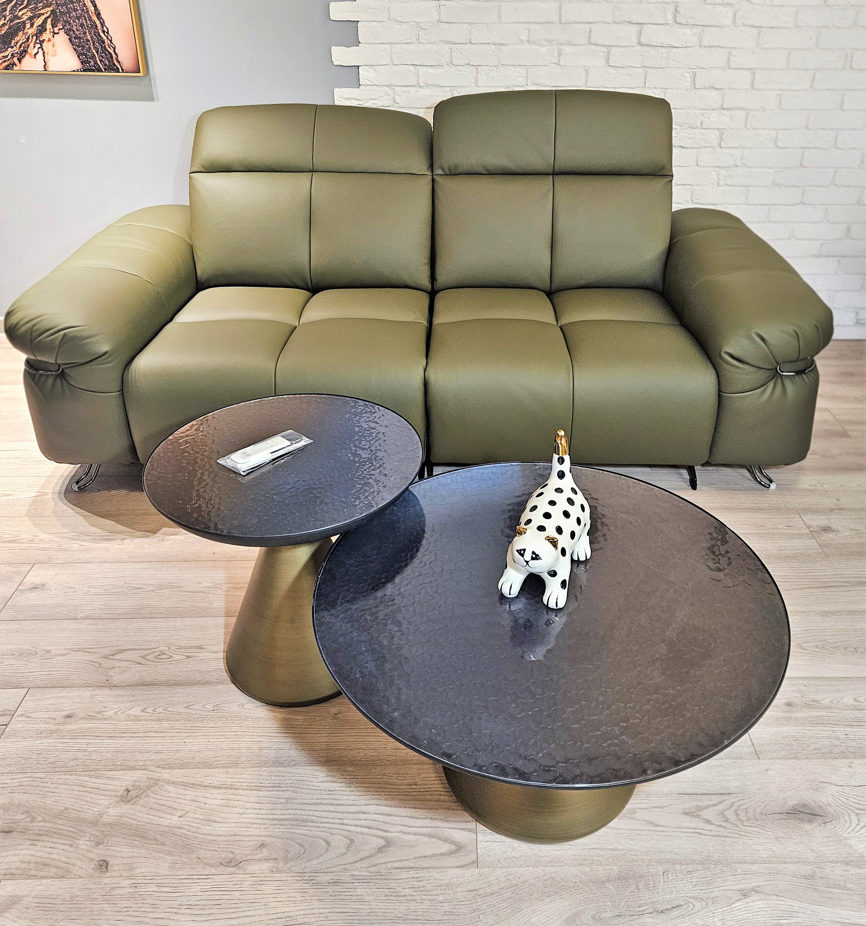 Отделка выполнена из высококачественной натуральной кожи с лицевой стороны. Задняя часть дивана обита экокожей, полностью имитирующей натуральную кожу лицевой стороны.
