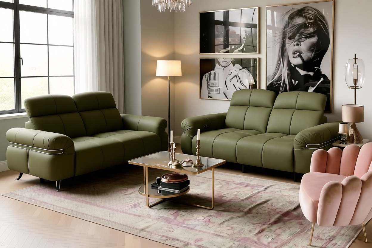 Диван-реклайнер оснащен раздвижными электромеханизмами, позволяющими подобрать наиболее удобное положение.