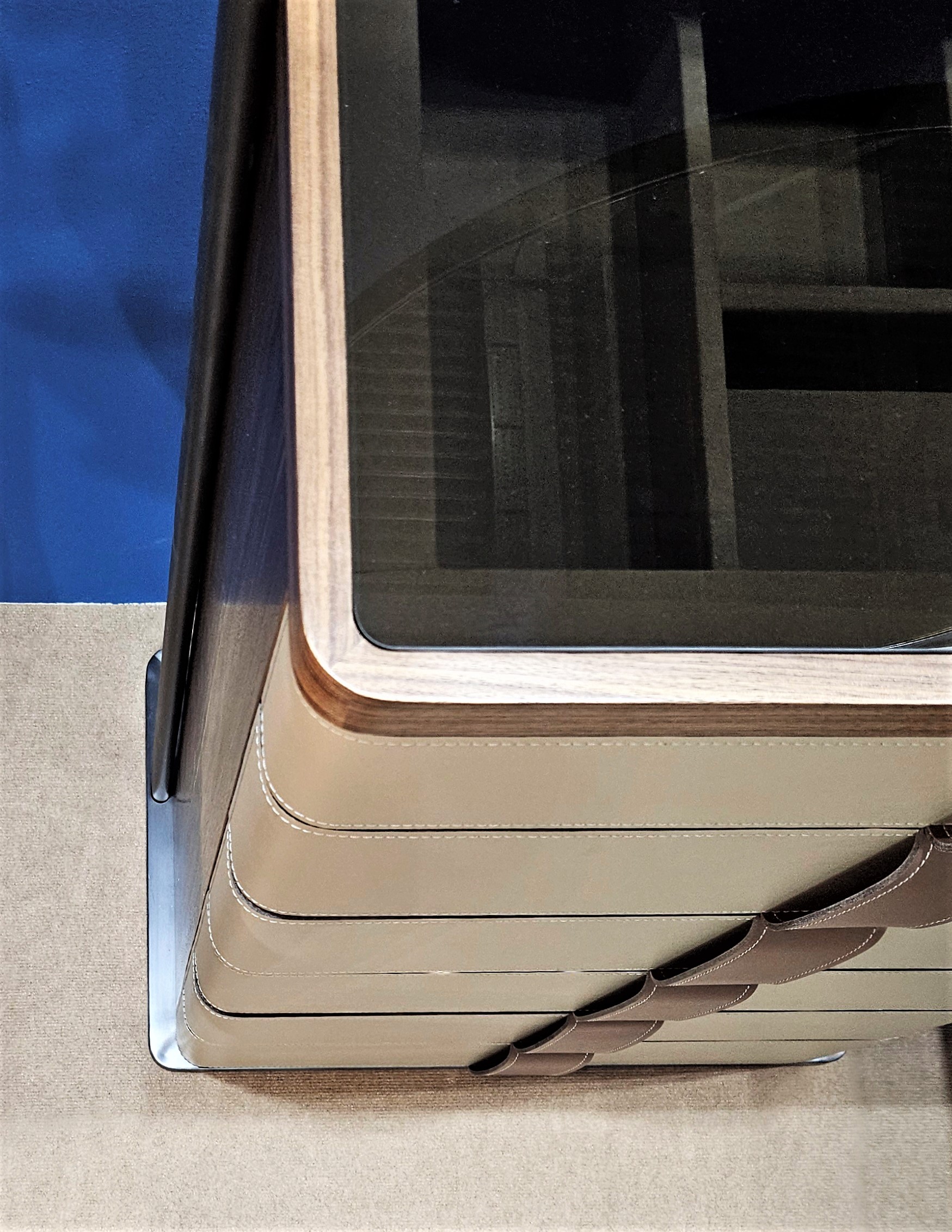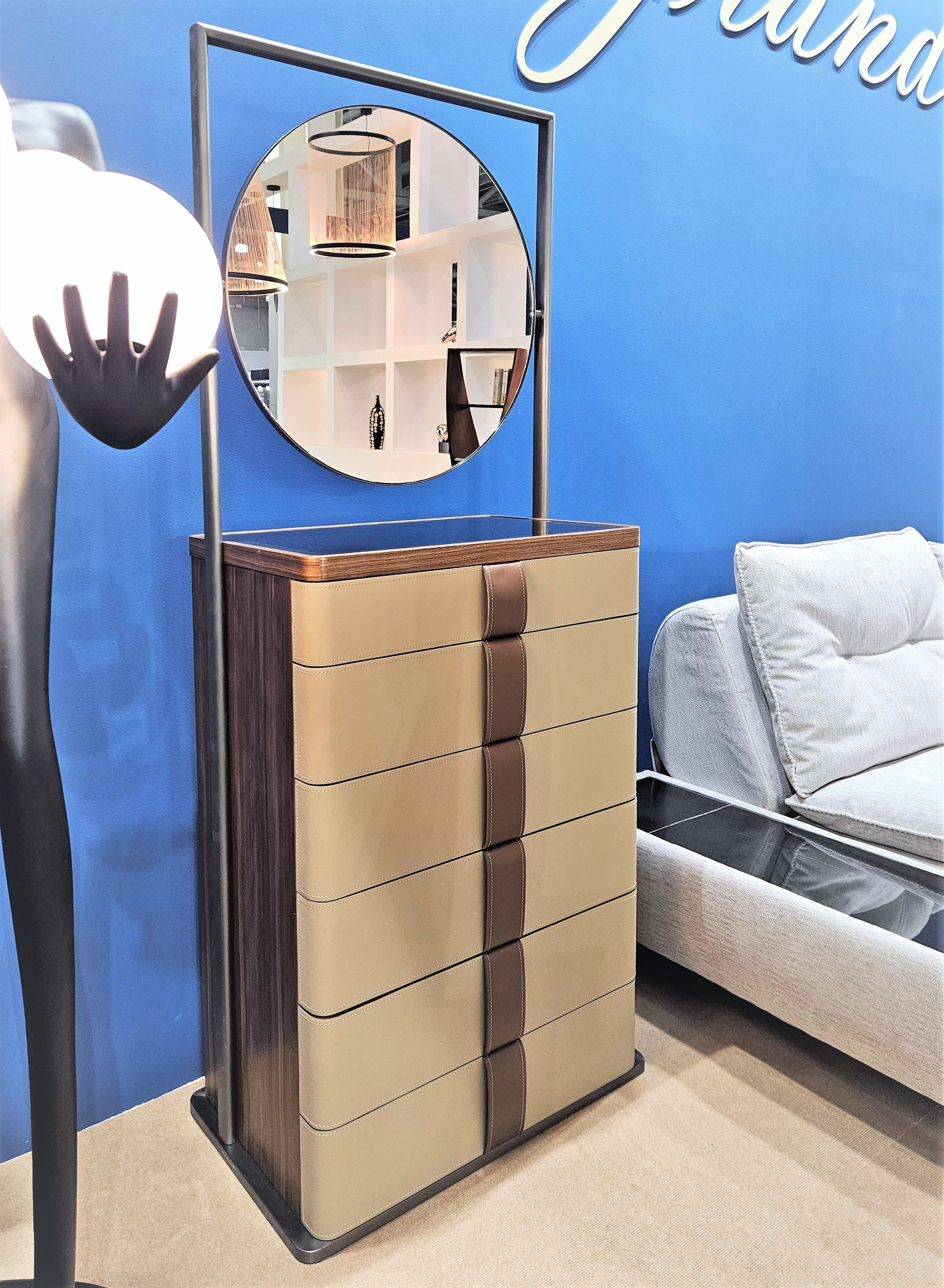 Высокий комод с шестью ящиками и фасадами из экокожи.