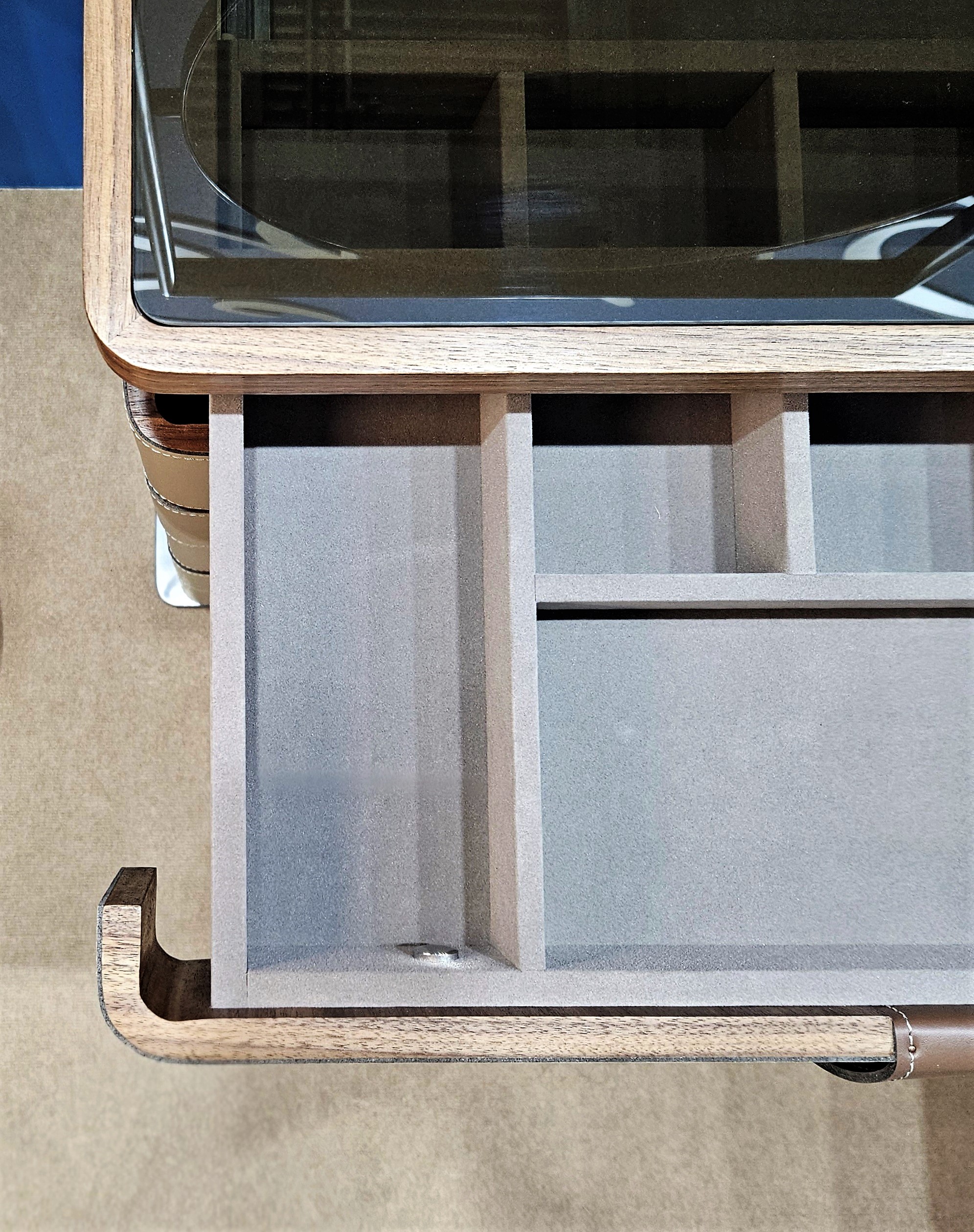 Каркас выполнен из МДФ, облицован шпоном и массивом ореха.