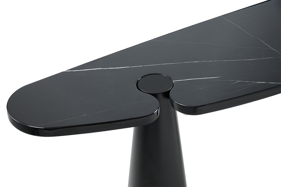Столешница с закругленными углами выполнена из черного мрамора Marquina