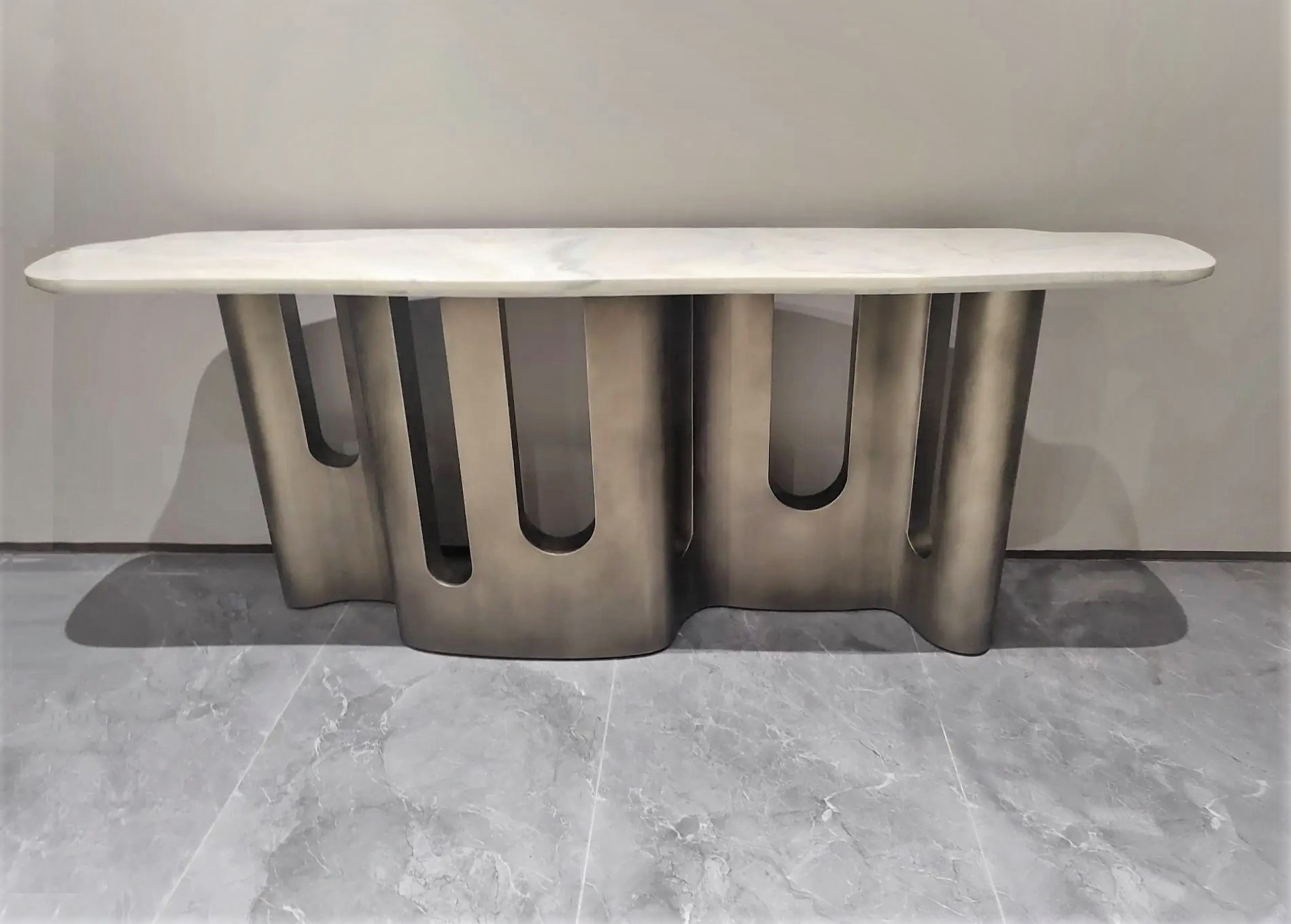 Столешница с закругленными углами выполнена из натурального мрамора Fendi Green.