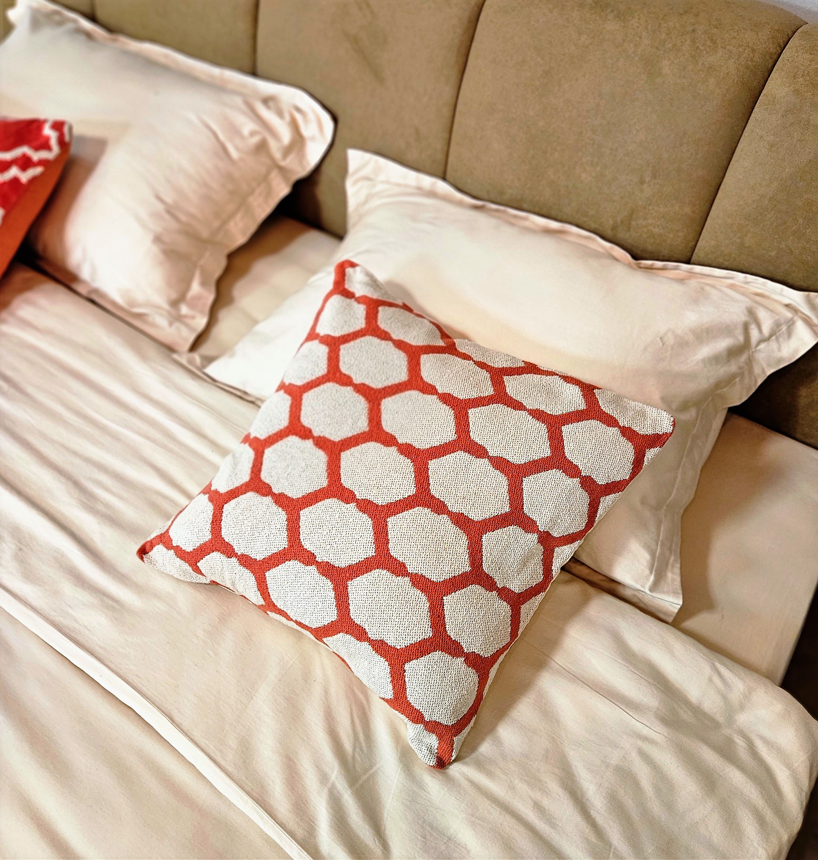 Лицевая ткань наволочки — жаккард. Ткань с рельефным рисунком из хлопка и шерсти.