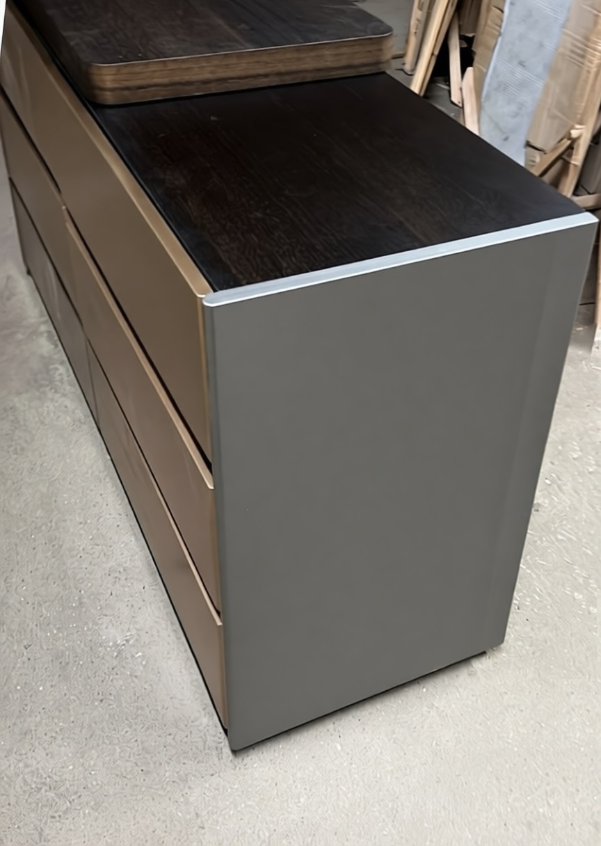 Выдвижные ящики с плавным ходом и доводчиками. Ручки интегрированы в фасад ящиков.