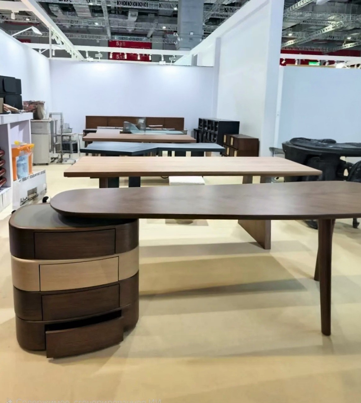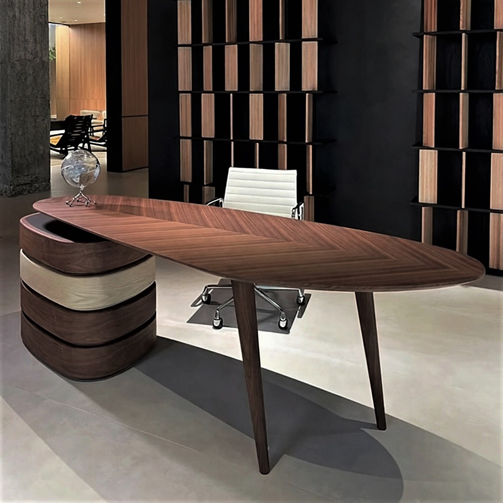 Деревянная асимметричная столешница со шпонированной поверхностью.