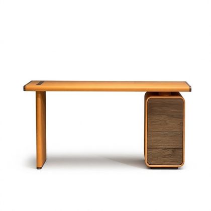 Отделка стола выполнена из экокожи. Цвет охра.
