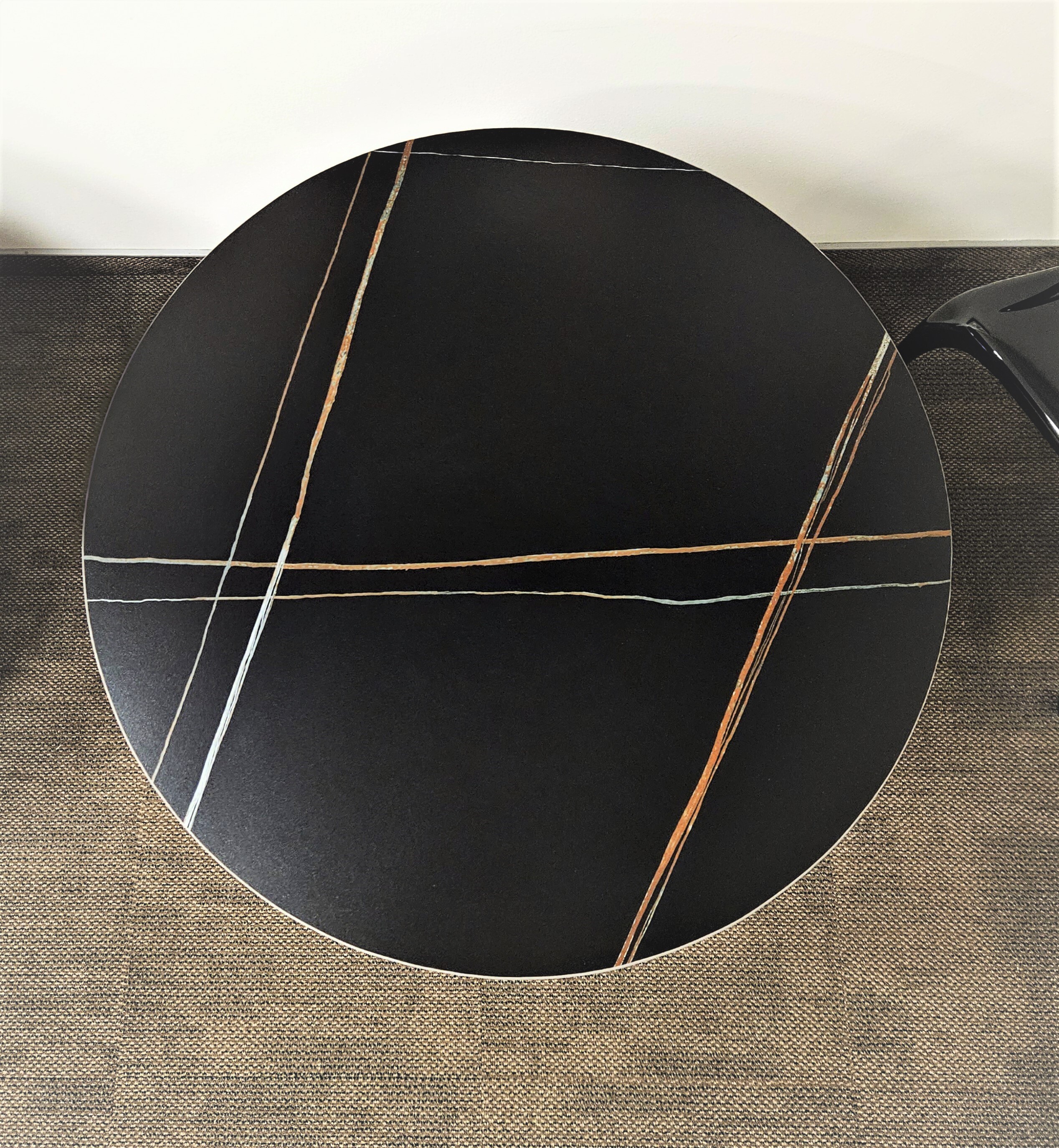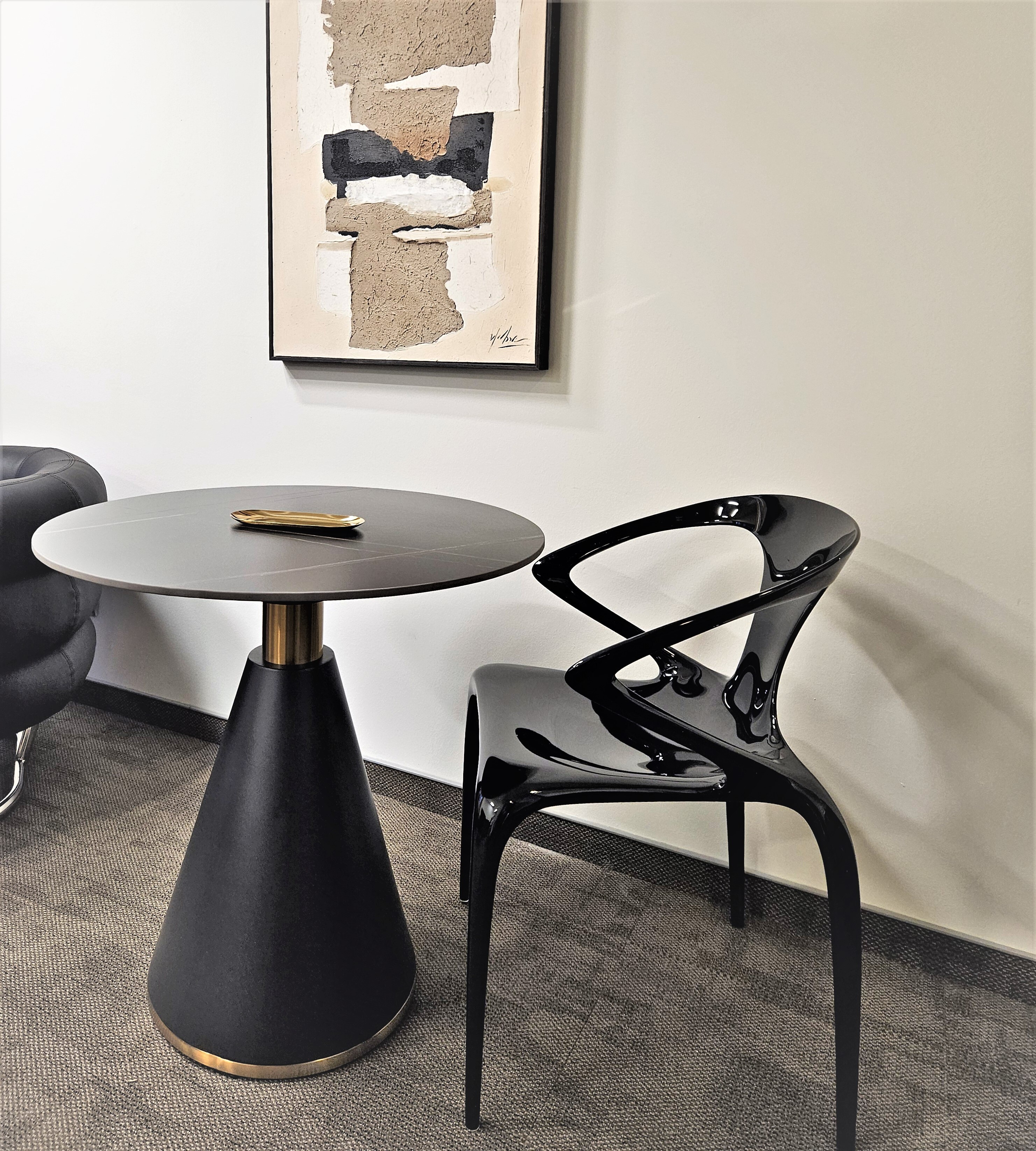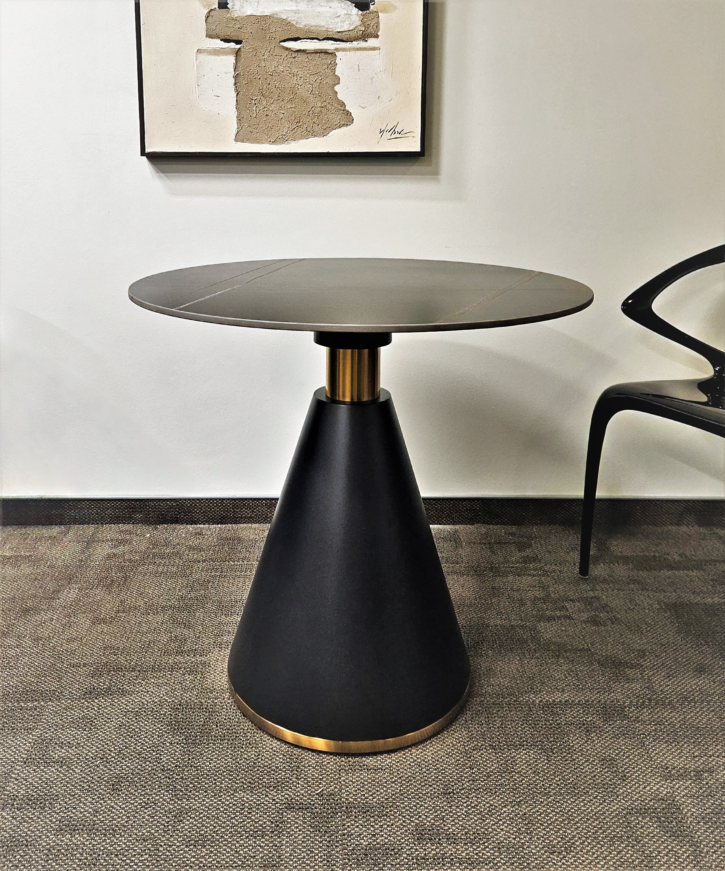 Ножка из металла, цвет черный матовый с латунными вставками.