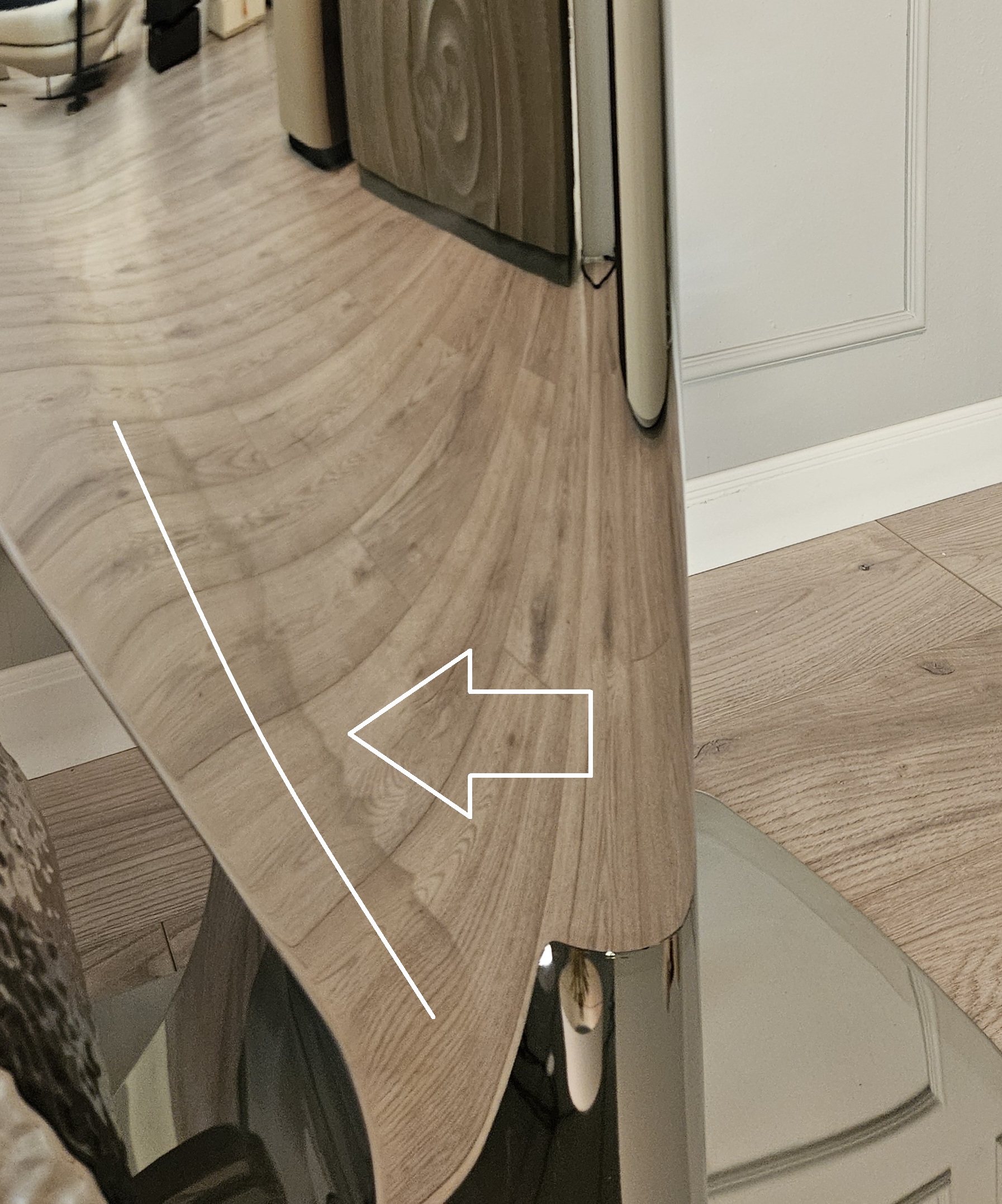 Легкий визуальный дефект на зеркальной поверхности опоры стола (см. последние фото).