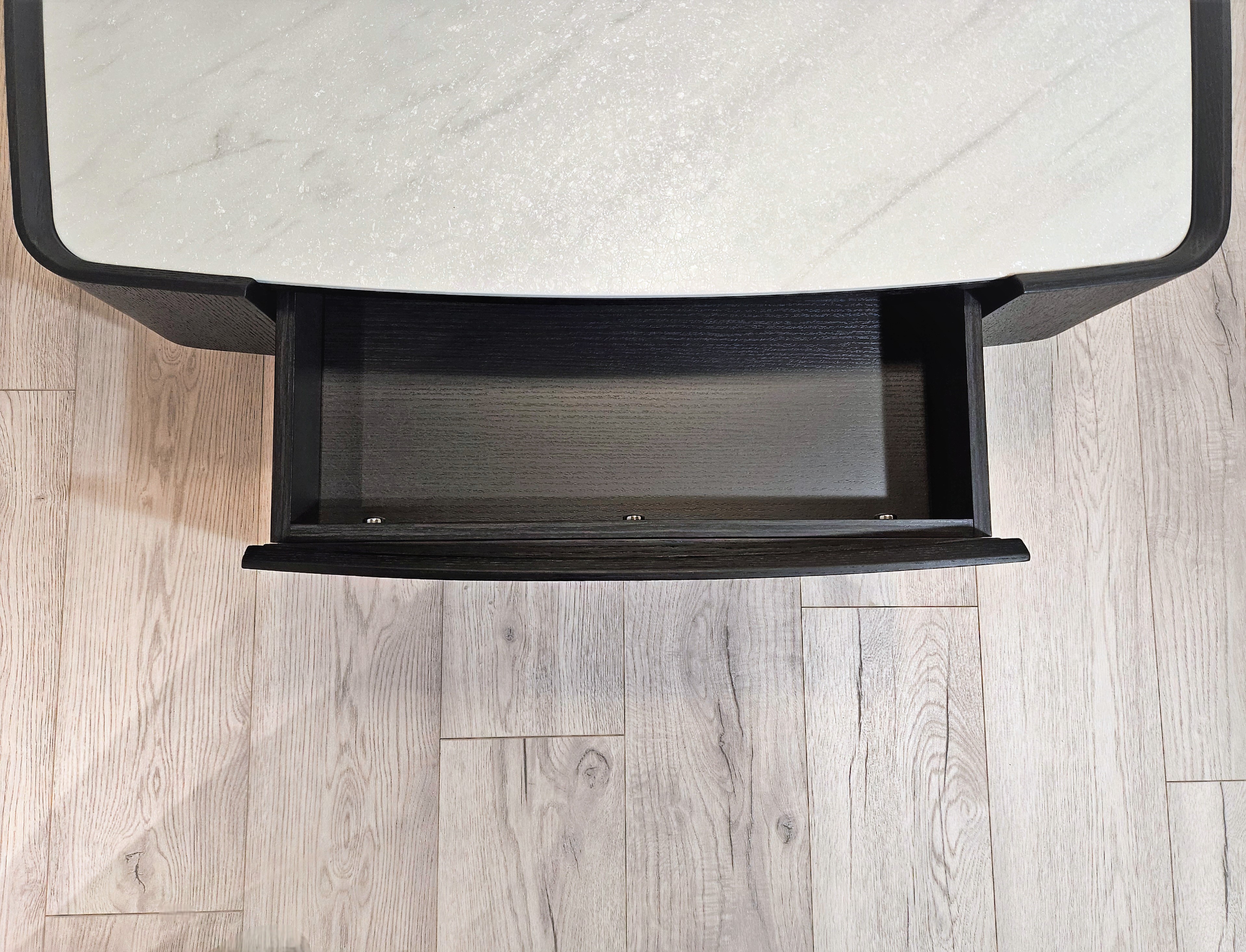На столешнице достаточно места для ламп, необходимых предметов, а в ящиках можно хранить нужные вещи, книги и пульты дистанционного управления.