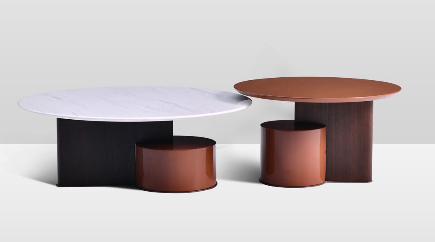 Вертикальная опора, цвет орех; круглая - из лакированного МДФ, цвет охра.
