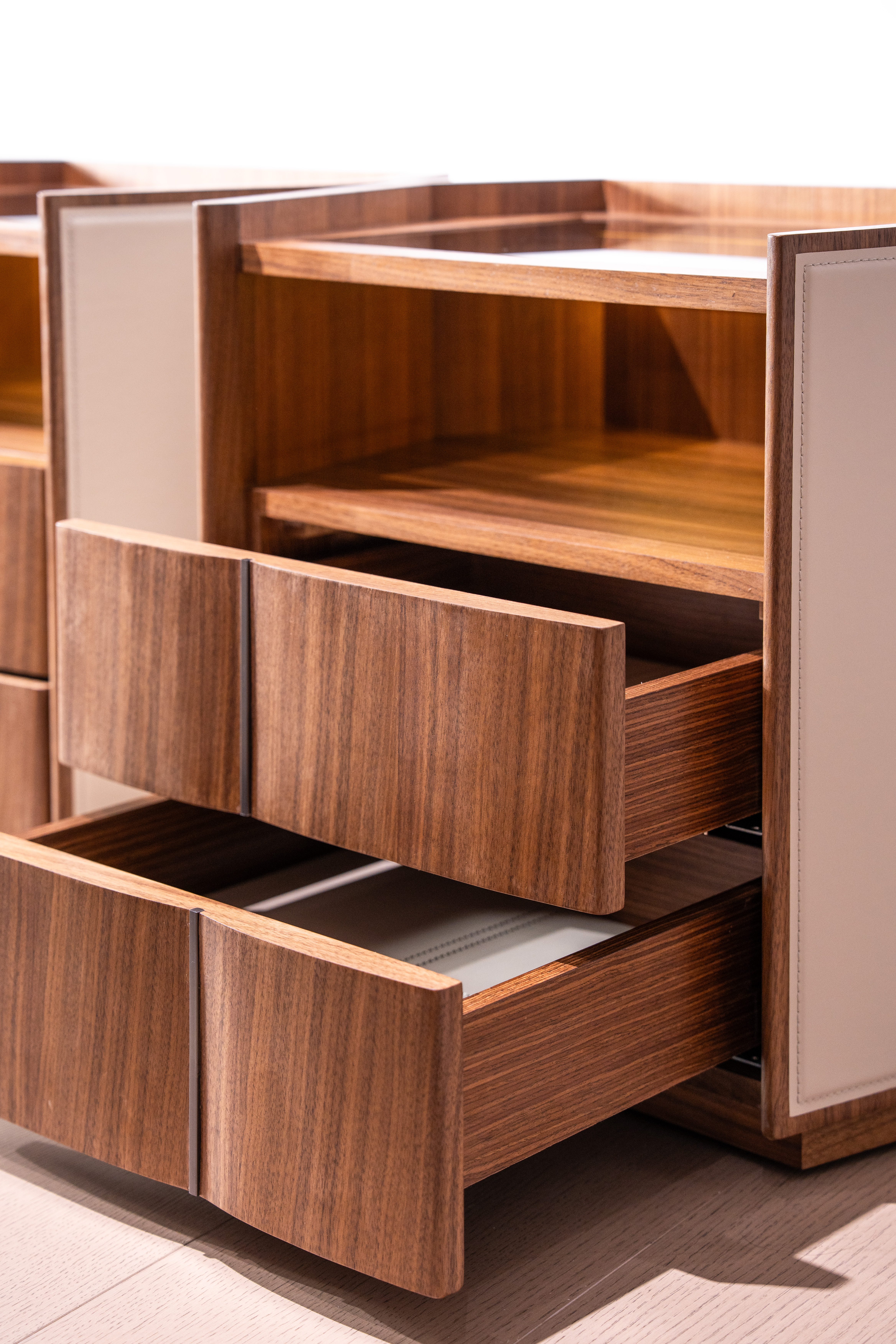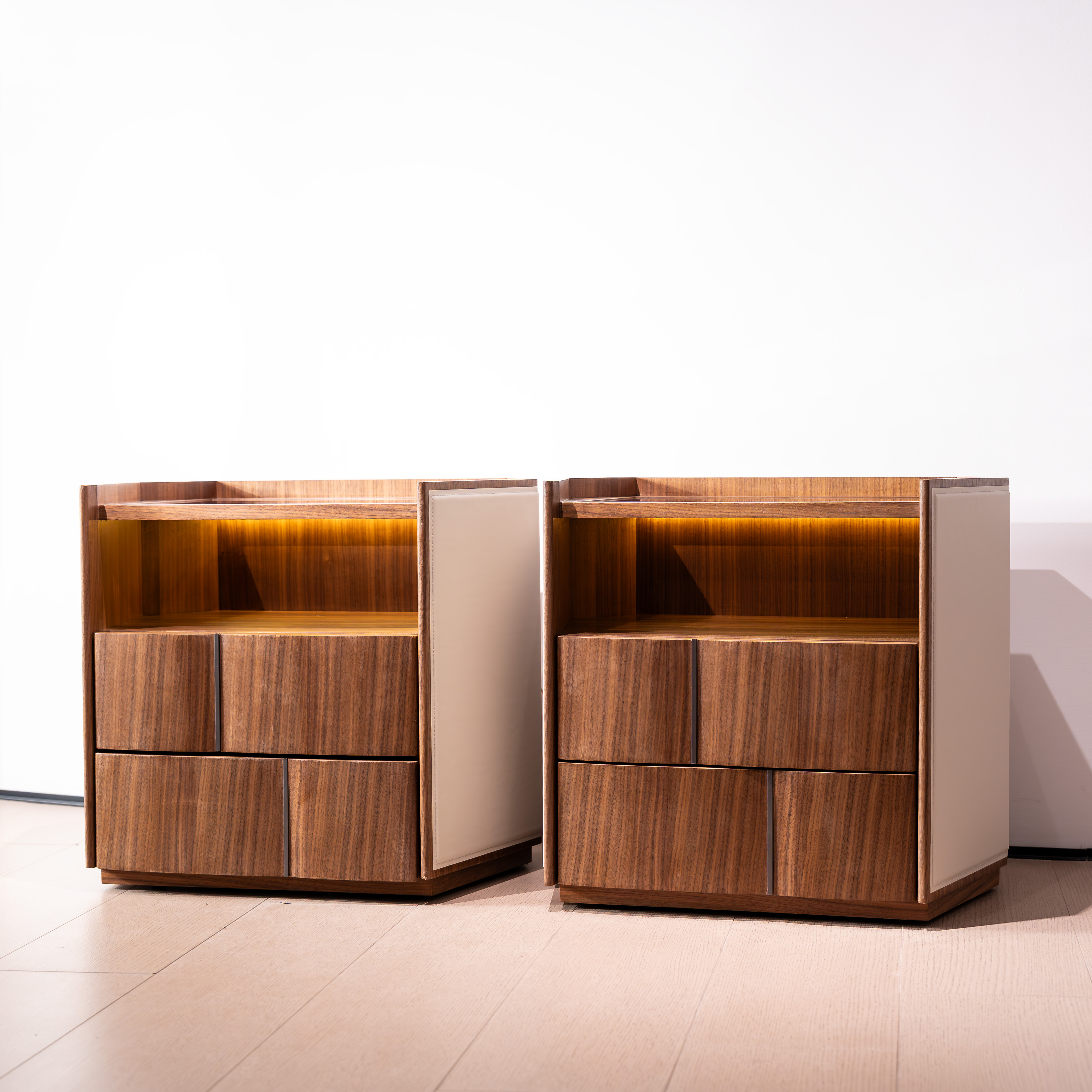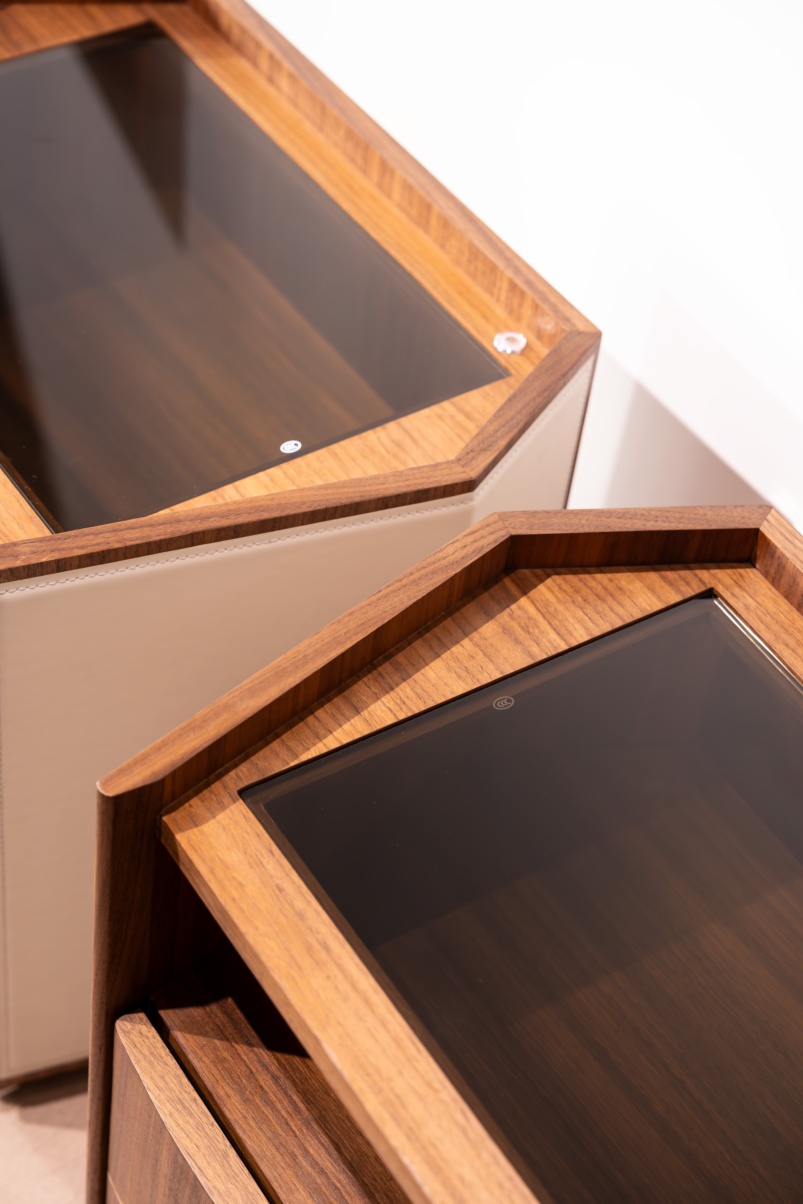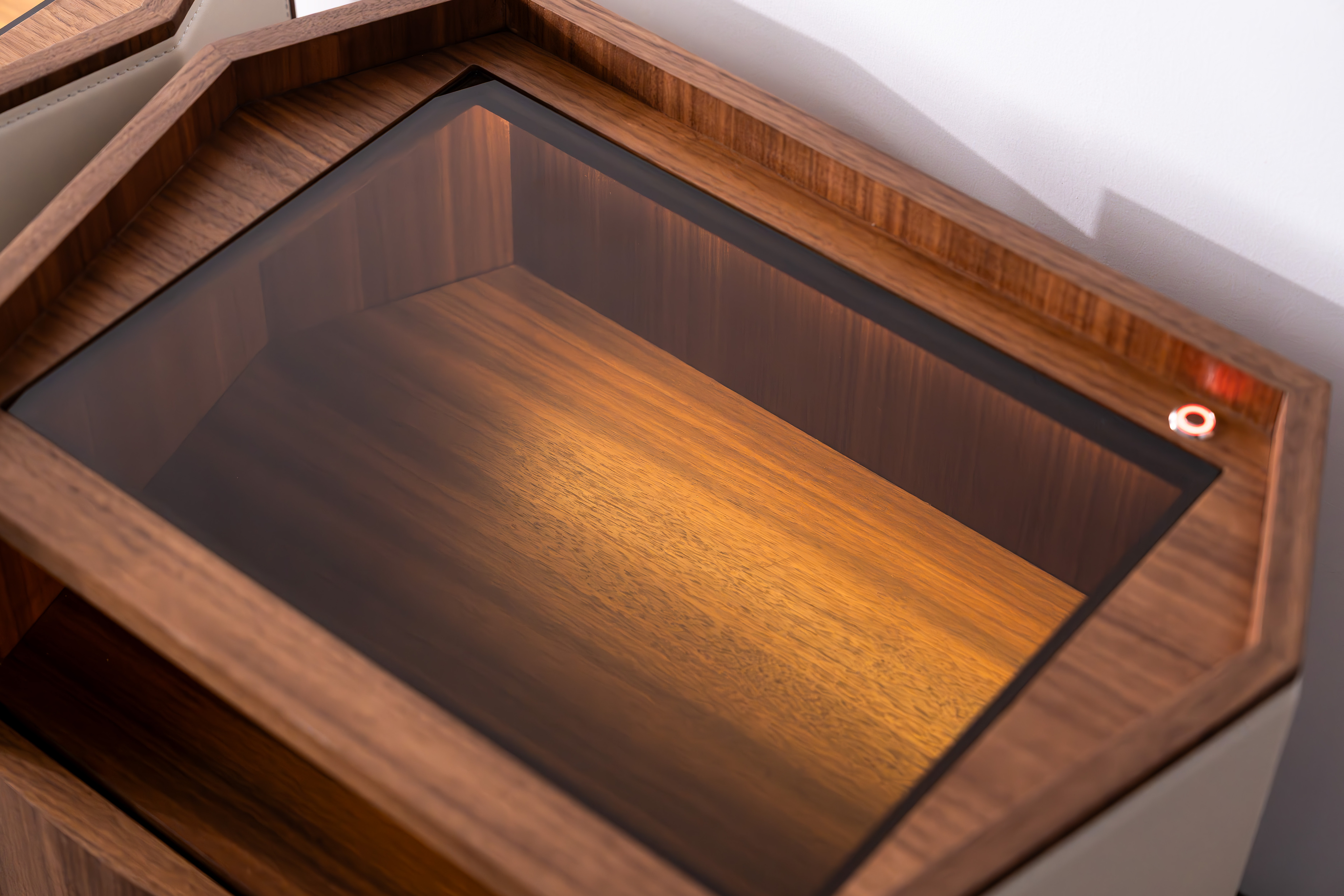 Каждый элемент — гладкая отделка из орехового дерева, бархатистый кожаный акцент, дымчатое стекло с его светящимся секретом — гармонично сочетаются, создавая прикроватную тумбочку, которая является не просто мебелью, а символом стиля жизни. Идеально подходящий для высококлассных спален, он сочетает в себе функциональную элегантность и атмосферное очарование, воплощая видение Джорджетти о “дизайне как чувственном опыте".