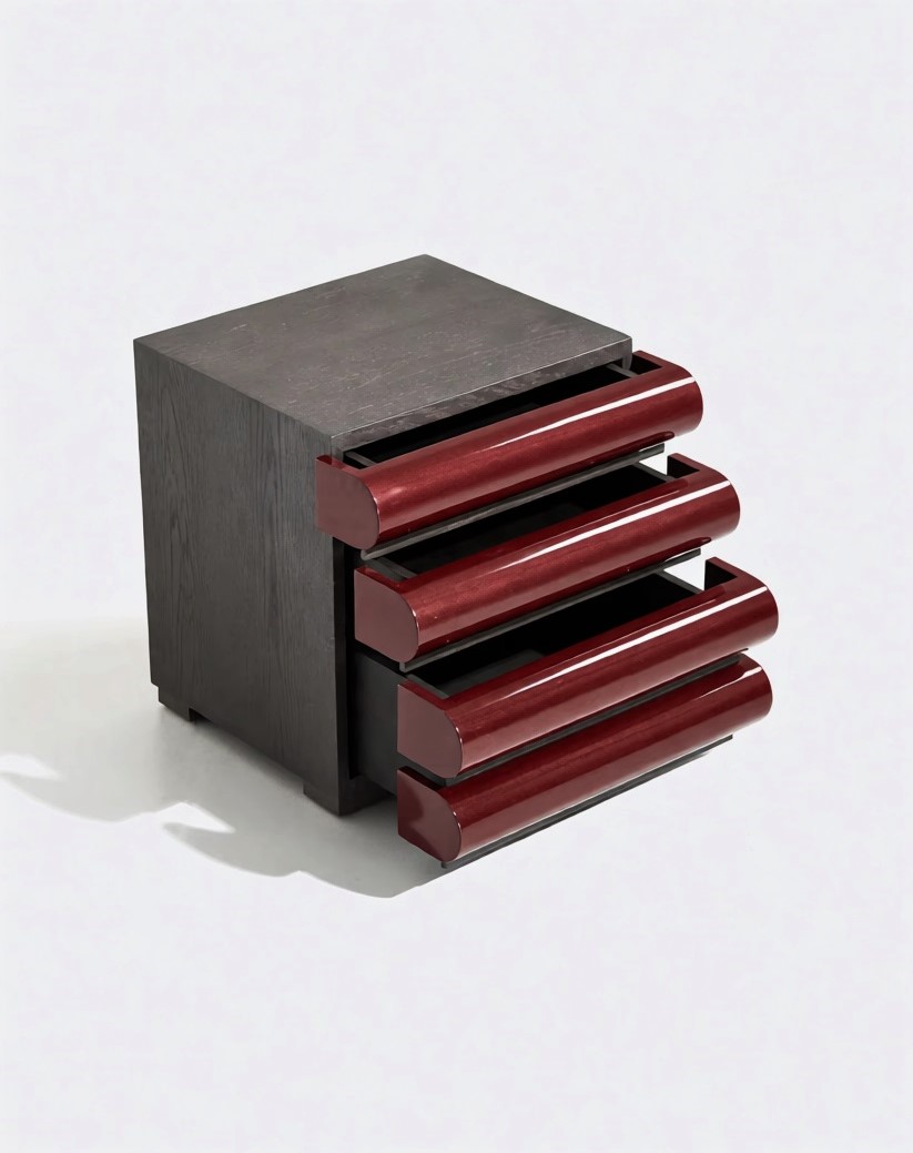 Тумба имеет уникальный дизайн фасадов с интегрированными ручками.