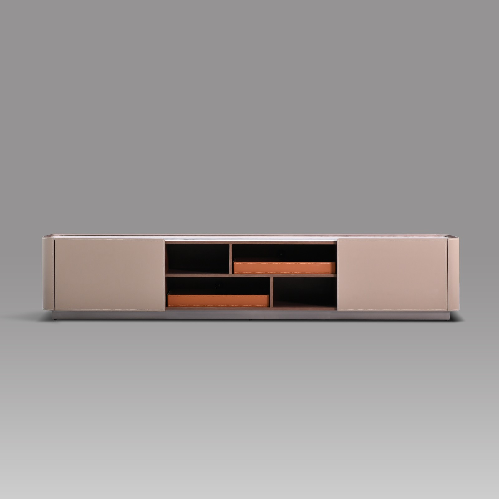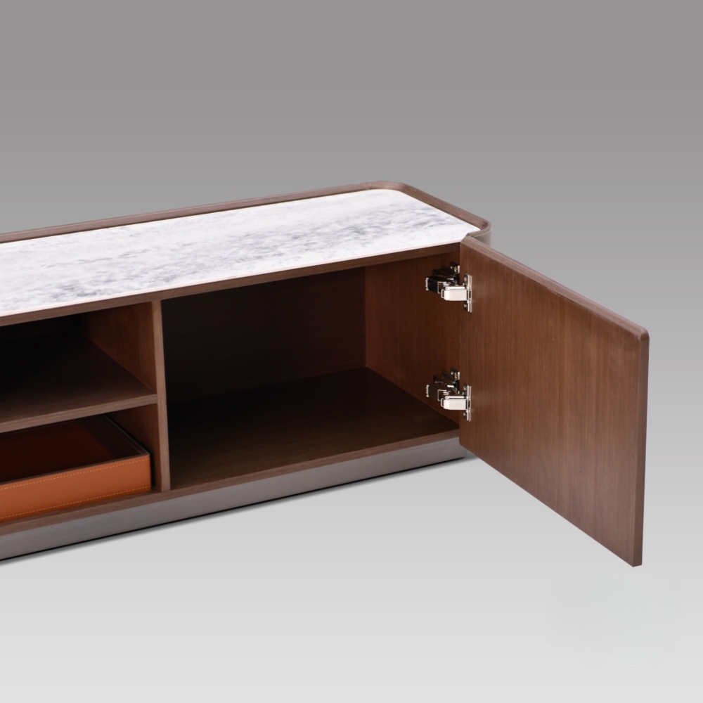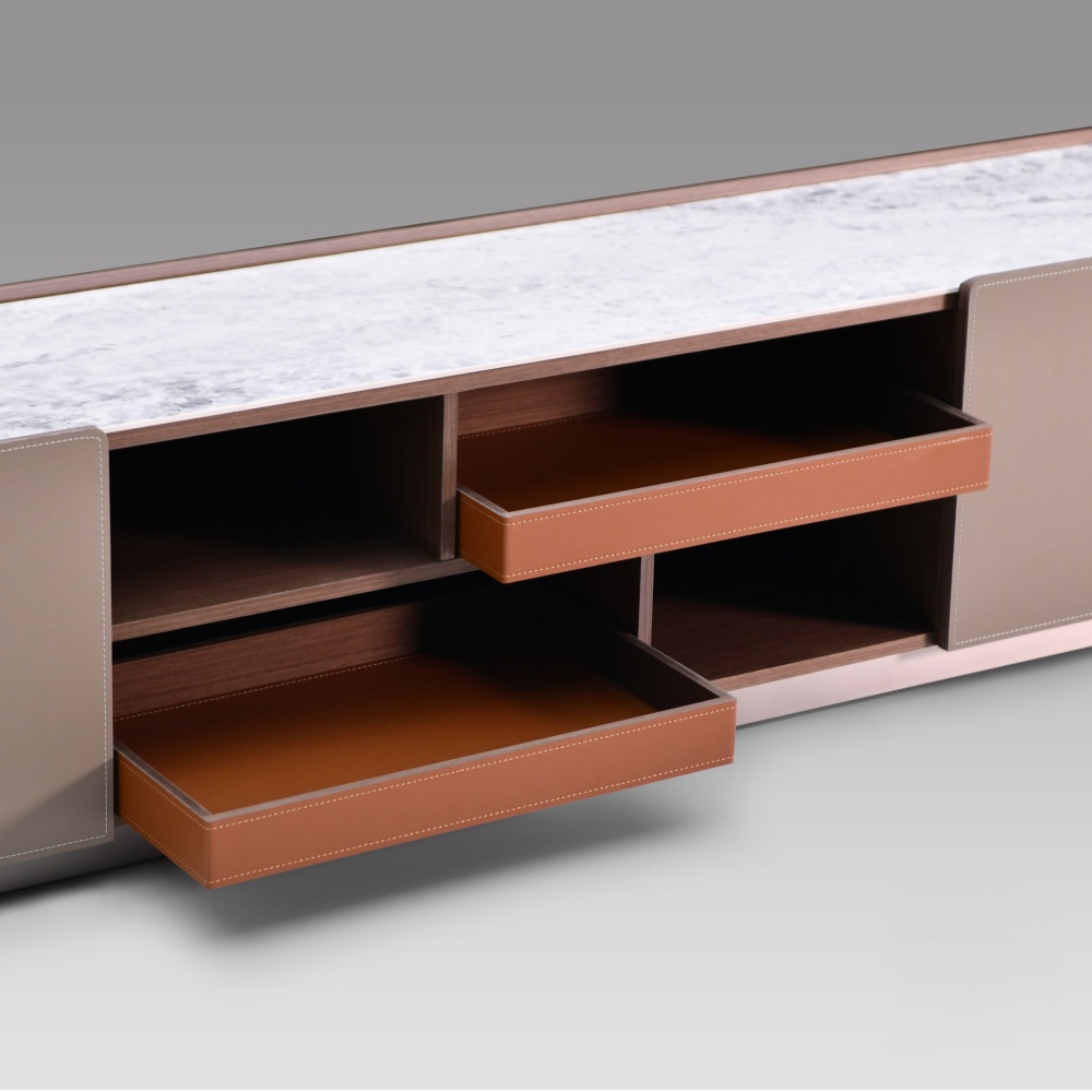 Тумба имеет уникальный дизайн со встроенными ручками.